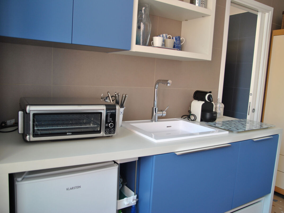 Cuisine ouverte (2 plaques à induction, micro-ondes, cafetière électrique).