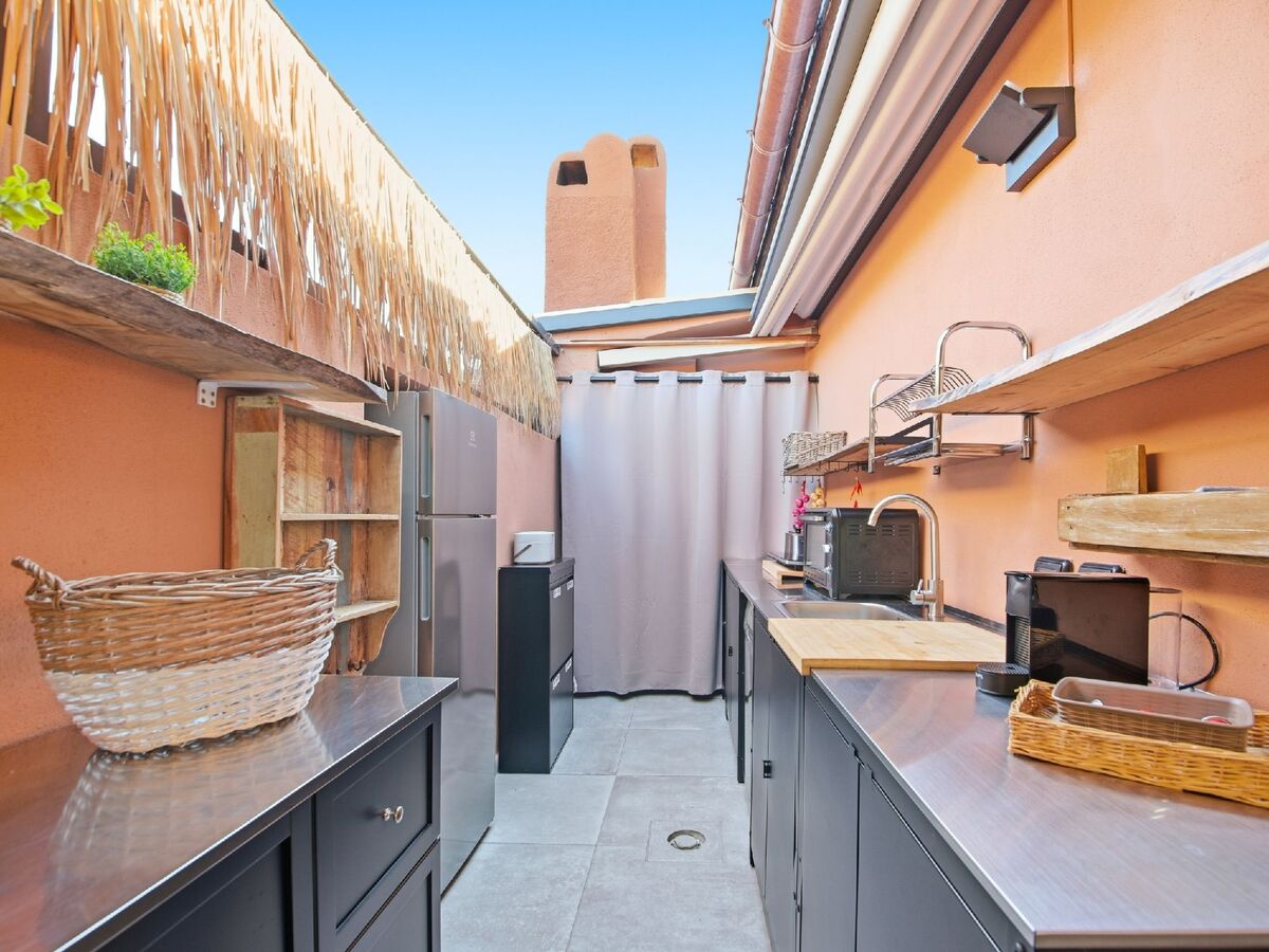 Meubles de terrasse, barbecue, place pour s'asseoir.