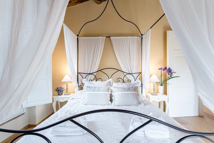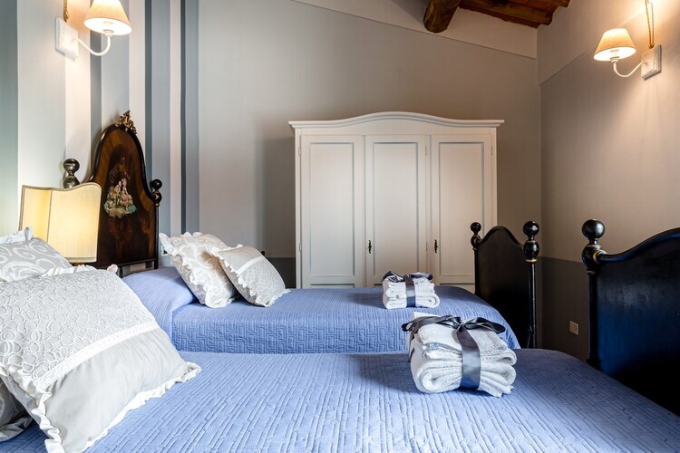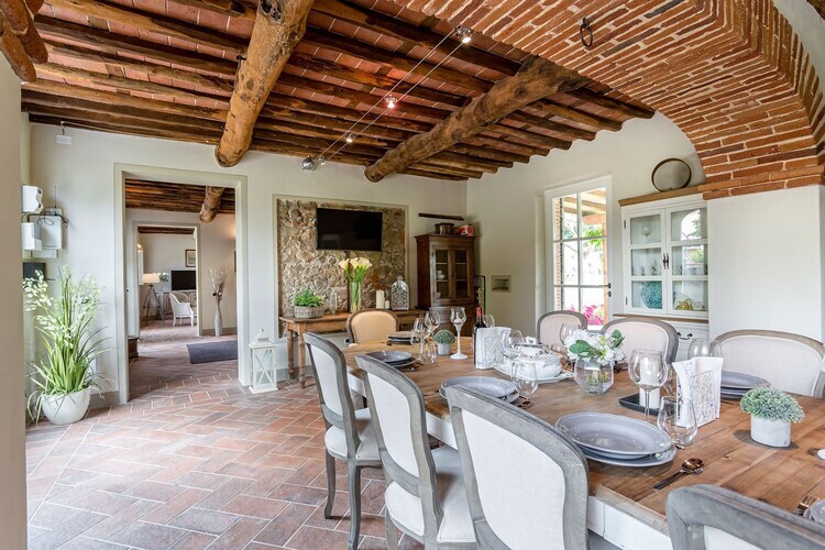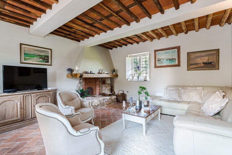 Découvrez un intérieur spacieux et décoré avec goût, qui a conservé le caractère authentique d'une maison de campagne toscane traditionnelle. Le rez-de-chaussée comprend un grand hall, une cuisine entièrement équipée, une salle à manger avec télévision et un salon chaleureux avec cheminée, créant un cadre idéal pour les réunions de famille. Le premier étage, entièrement climatisé, offre trois chambres parentales avec lit king-size et une chambre avec lits jumeaux, toutes conçues pour la détente, ainsi que deux salles de bains spacieuses pour votre confort.