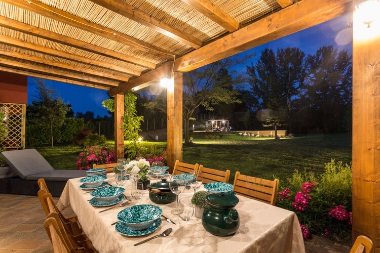 À l'extérieur, le vaste jardin de 10 000 m², agrémenté d'une oliveraie et de nombreux arbres fruitiers, offre un cadre paisible pour les familles. Profitez des repas en plein air sur la véranda, détendez-vous dans le coin salon ou rafraîchissez-vous dans la superbe piscine, avec vue imprenable et solarium. Cette ferme vous promet des vacances sereines et inoubliables, vous permettant de vous immerger dans la magie de la Toscane tout en profitant des équipements modernes et de la beauté de la nature.