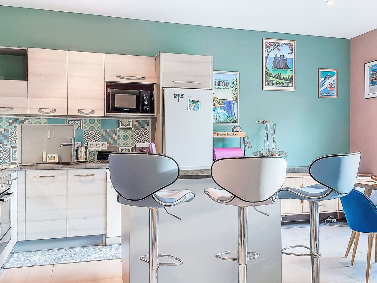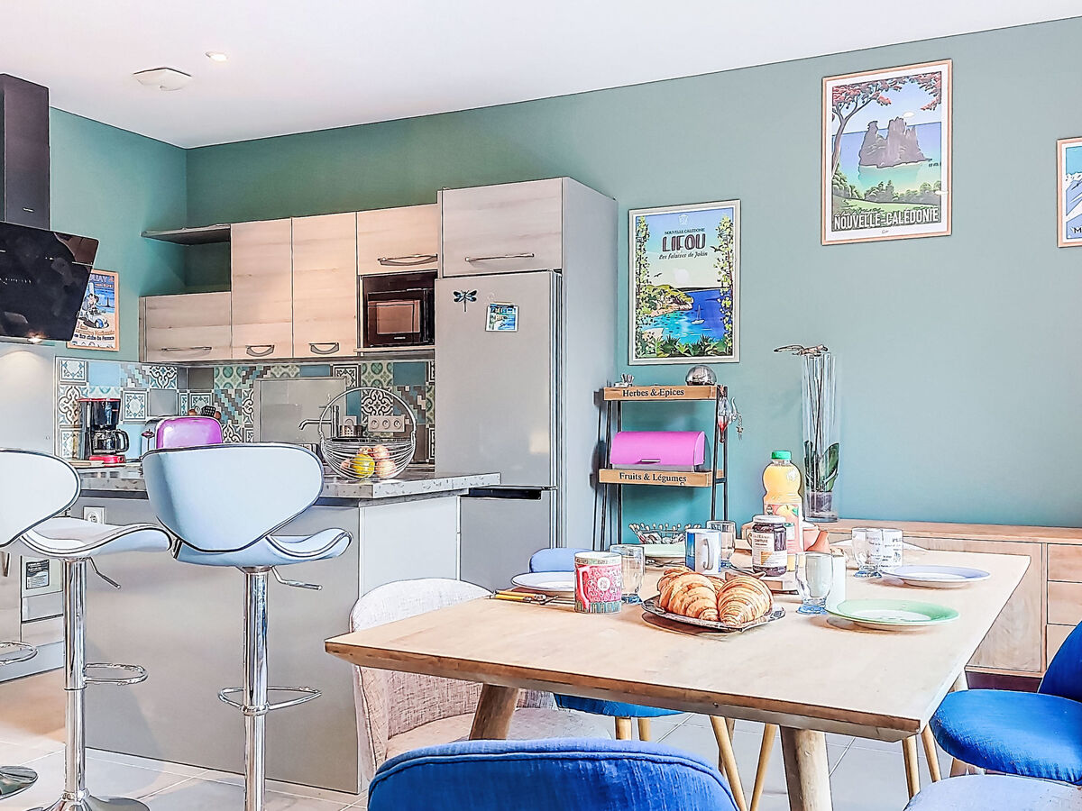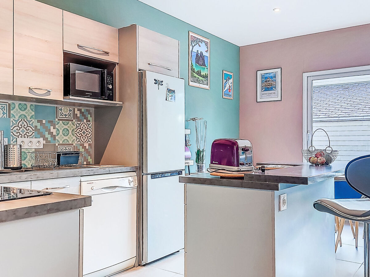 Grande cuisine ouverte (four, lave-vaisselle, 3 plaques à induction, grille-pain, bouilloire électrique, micro-ondes, congélateur, cafetière électrique, ilot de cuisine).