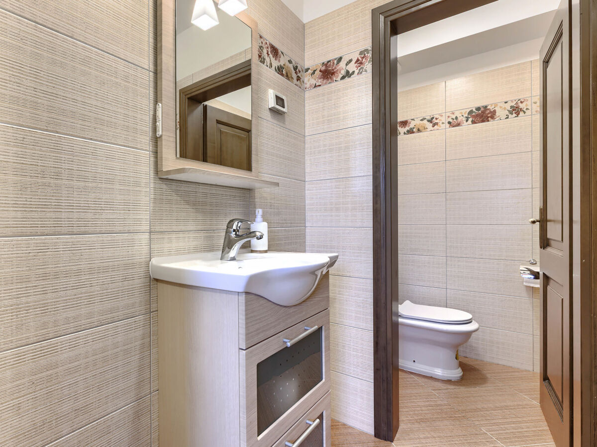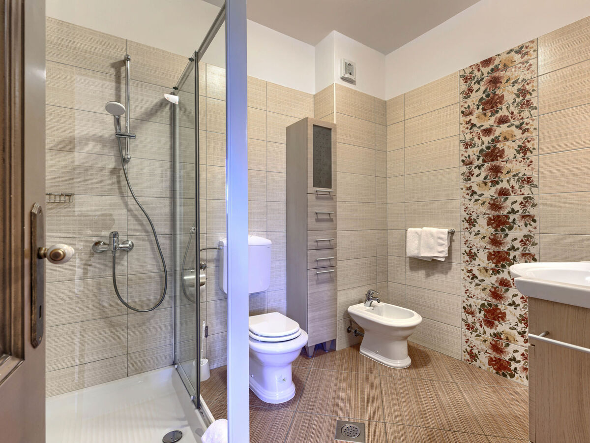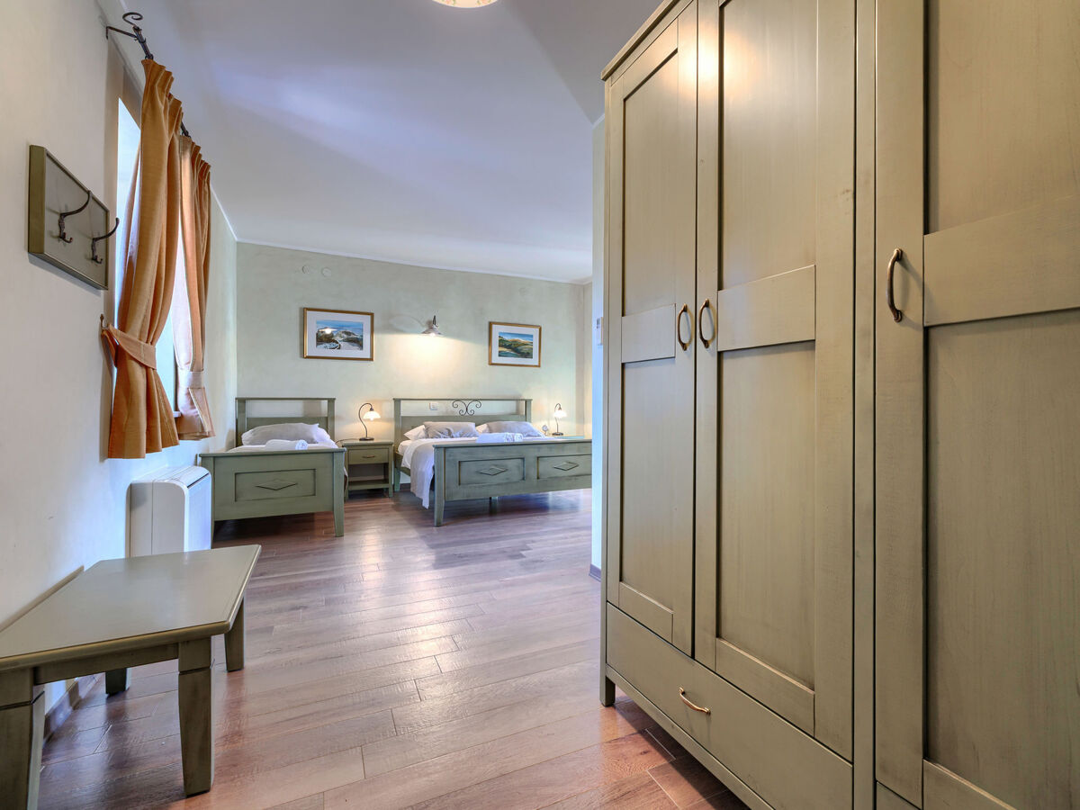 À l'étage supérieur: 1 chambre avec 1 lit (90 cm, longueur 200 cm), 1 grand-lit (160 cm, longueur 200 cm), douche/WC, TV (satellite) et air-conditionné.