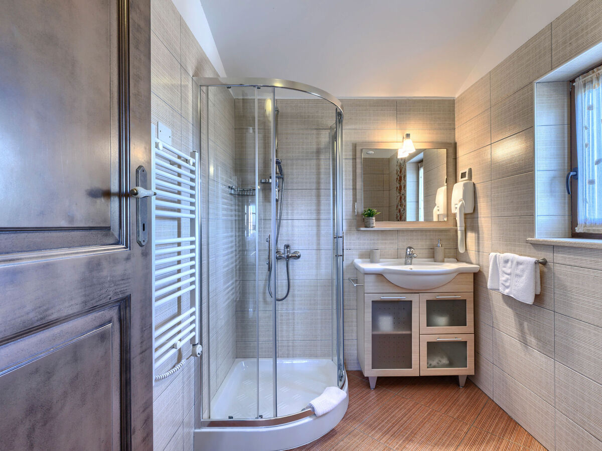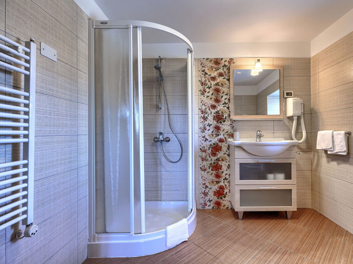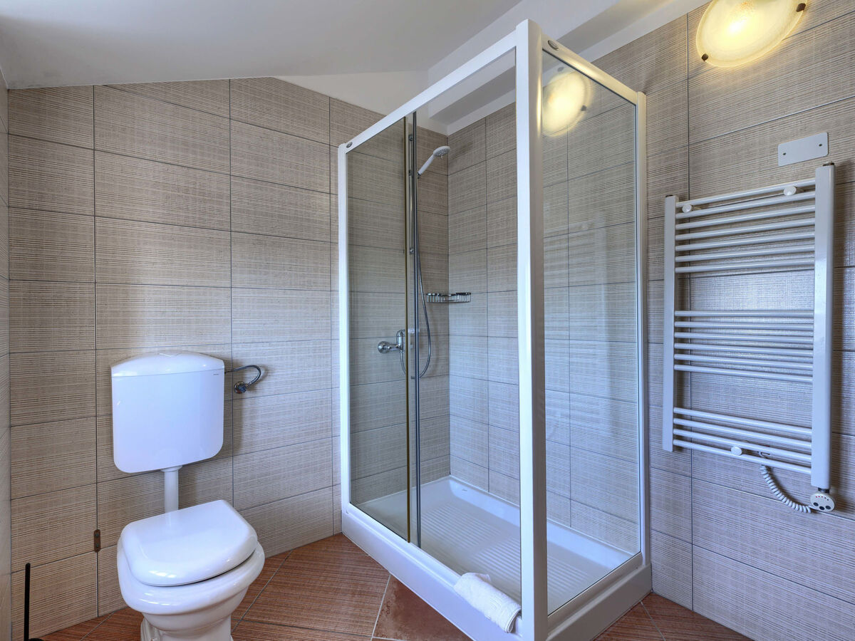 Sous le toit: 1 chambre avec 1 lit (90 cm, longueur 200 cm), 1 grand-lit (160 cm, longueur 200 cm), douche/WC, TV (satellite) et air-conditionné.