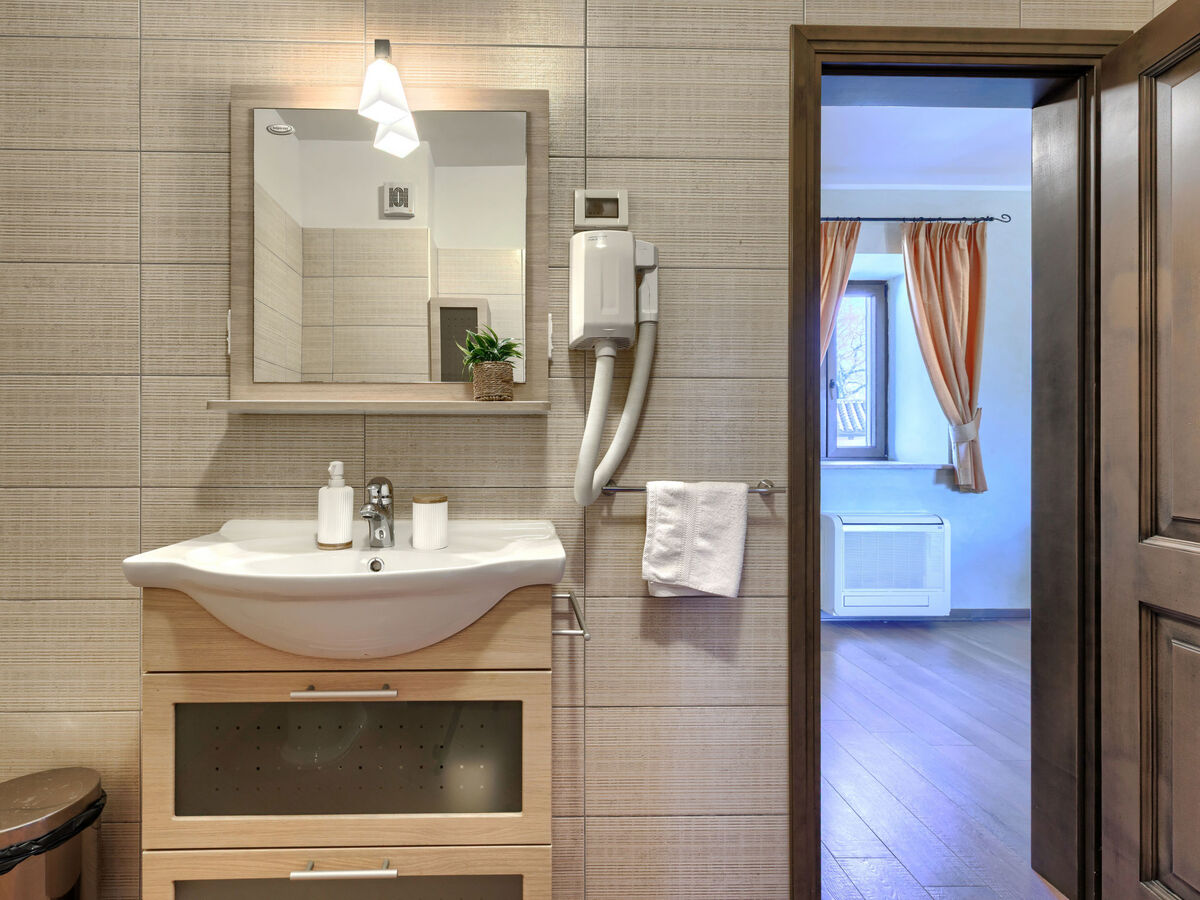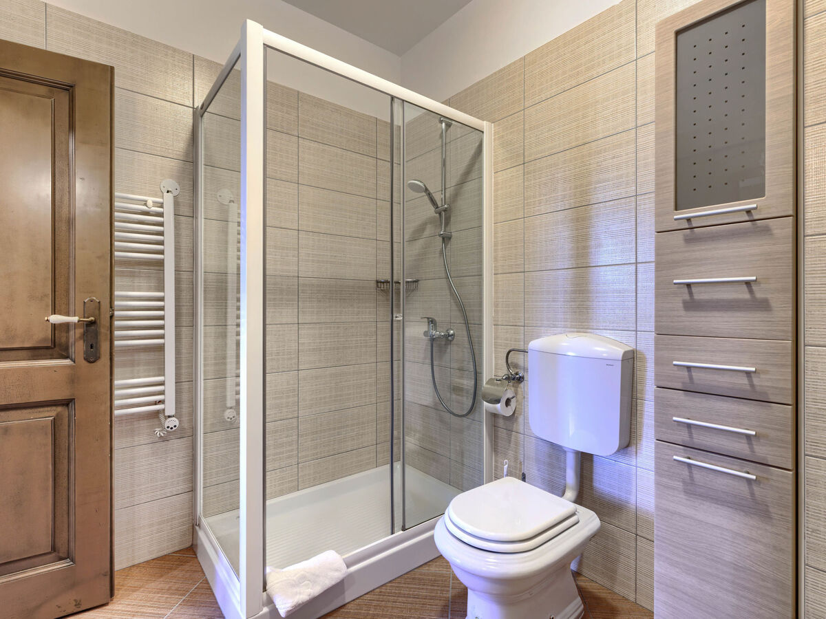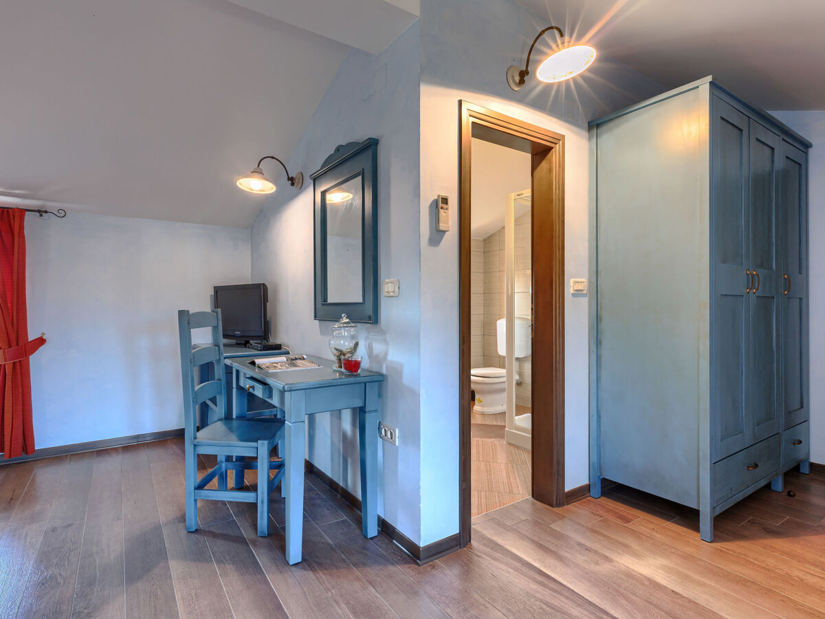 1 chambre avec 1 grand-lit (160 cm, longueur 200 cm), douche/WC, TV (satellite) et air-conditionné.