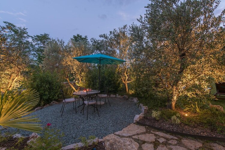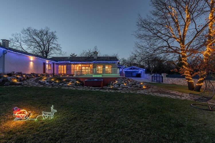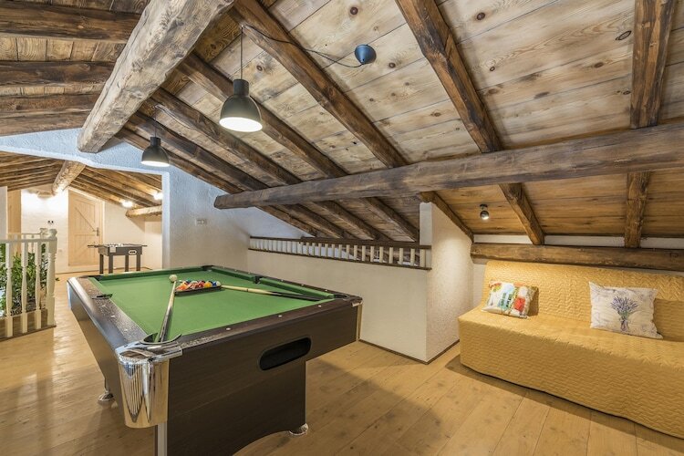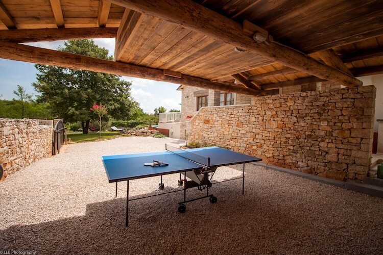À l'extérieur, le jardin méditerranéen abrite une grande piscine privée, un jacuzzi extérieur pour six personnes, des transats, une table de ping-pong et un espace barbecue, offrant ainsi un cadre idéal pour un séjour inoubliable en Istrie.