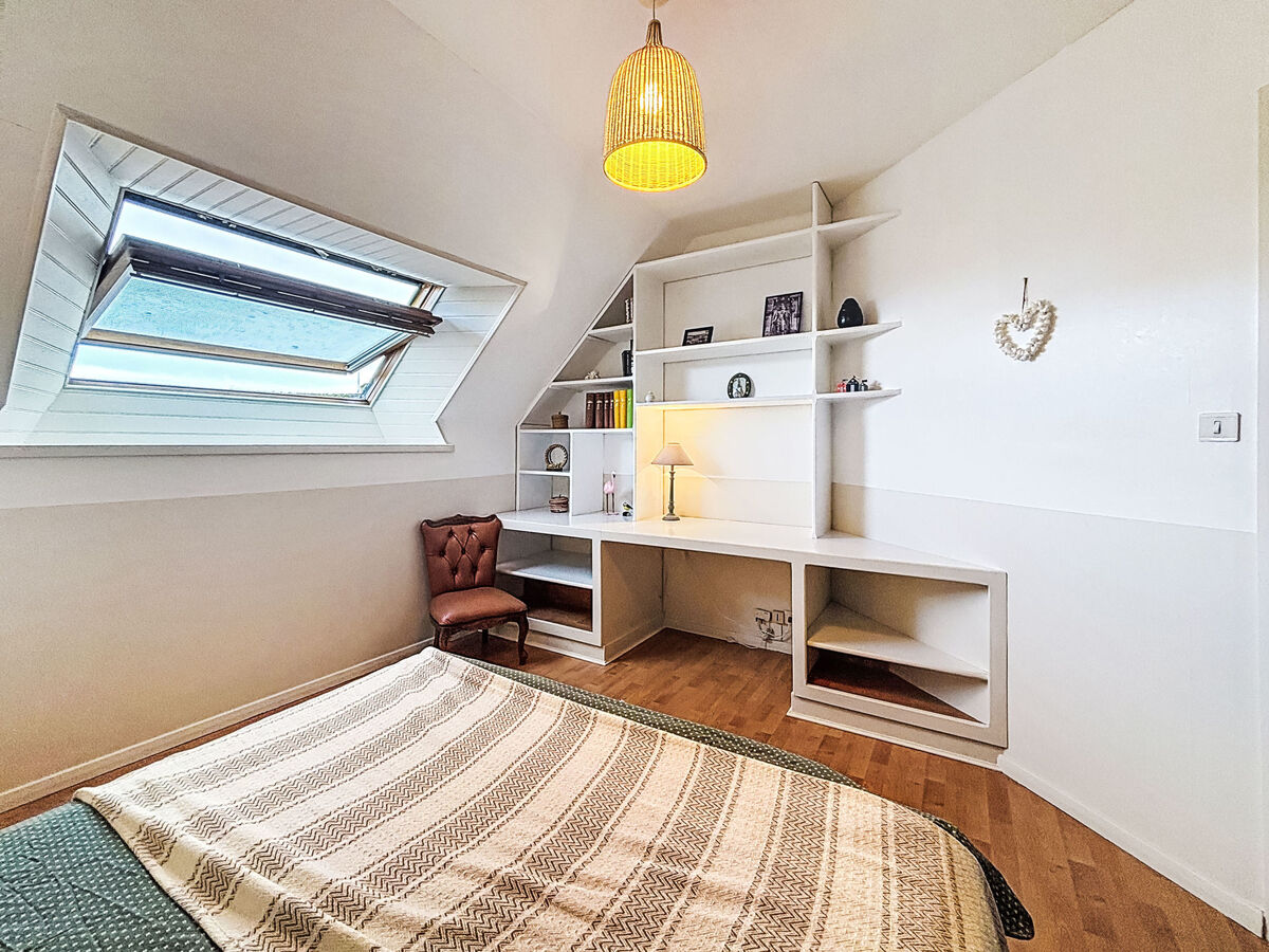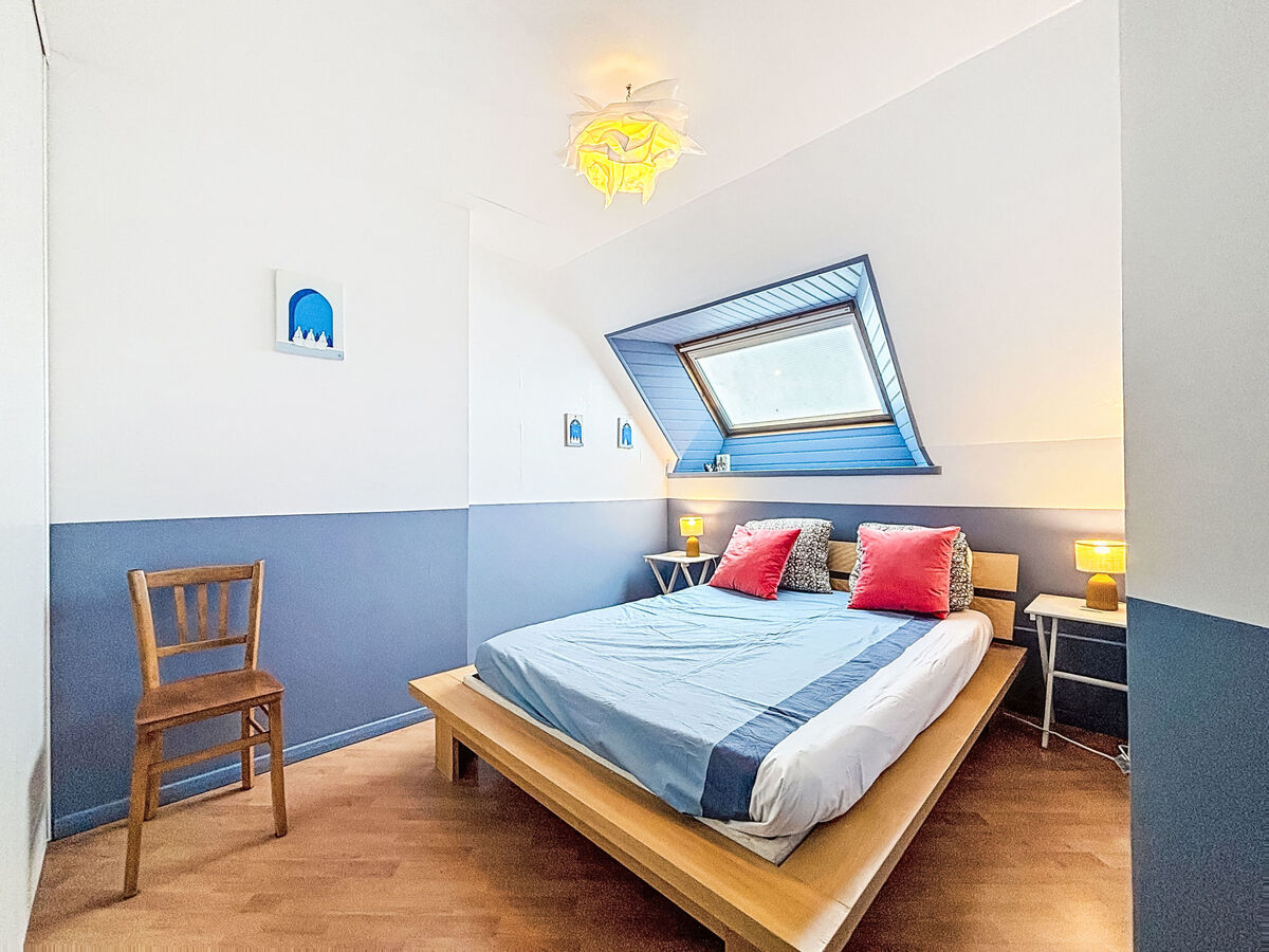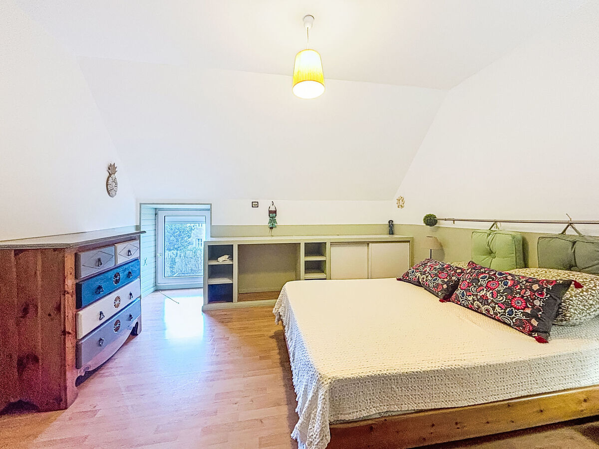 À l'étage supérieur: 1 chambre avec 1 grand-lit (1 x 160 cm, longueur 190 cm).