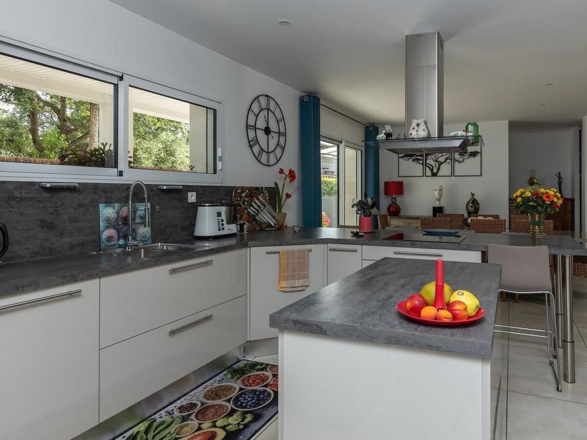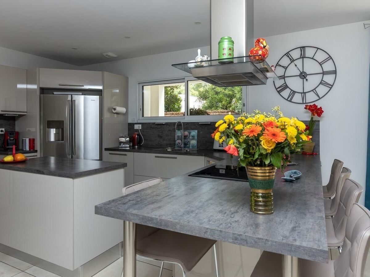 Villa contemporaine neuve de 270 m² habitables sur 2 niveaux, pouvant accueillir 10 personnes.Un salon salle à manger donnant sur une cuisine équipée et ouverte d'une surface totale de 80 m².
