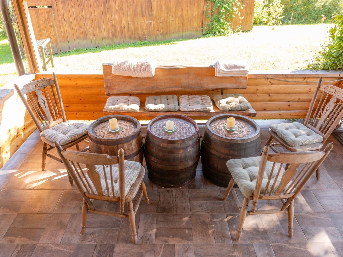 This wooden house offers a warm and comfortable stay all year round.