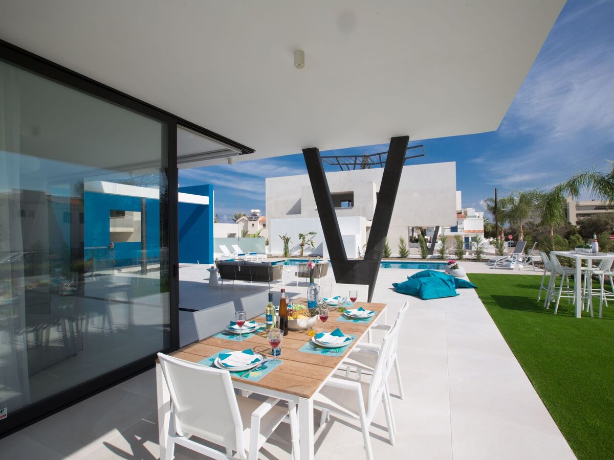 This brand new luxurious 5 bedroom villa is located in the popular resort area of Protaras and is just a 5 minute walk to the beach and to a vast selection of bars, restaurants and shops.