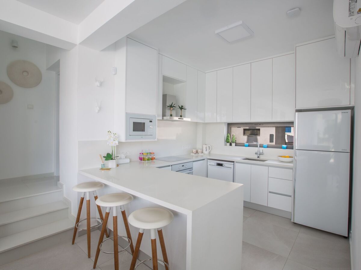 The dining area has seating for 6 persons and the modern kitchen is fully equipped with all appliances you need for your self-catering stay as well as a breakfast bar.