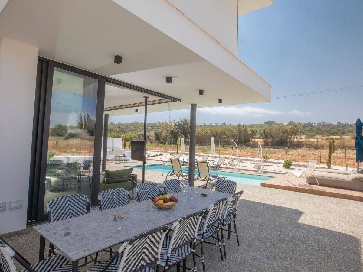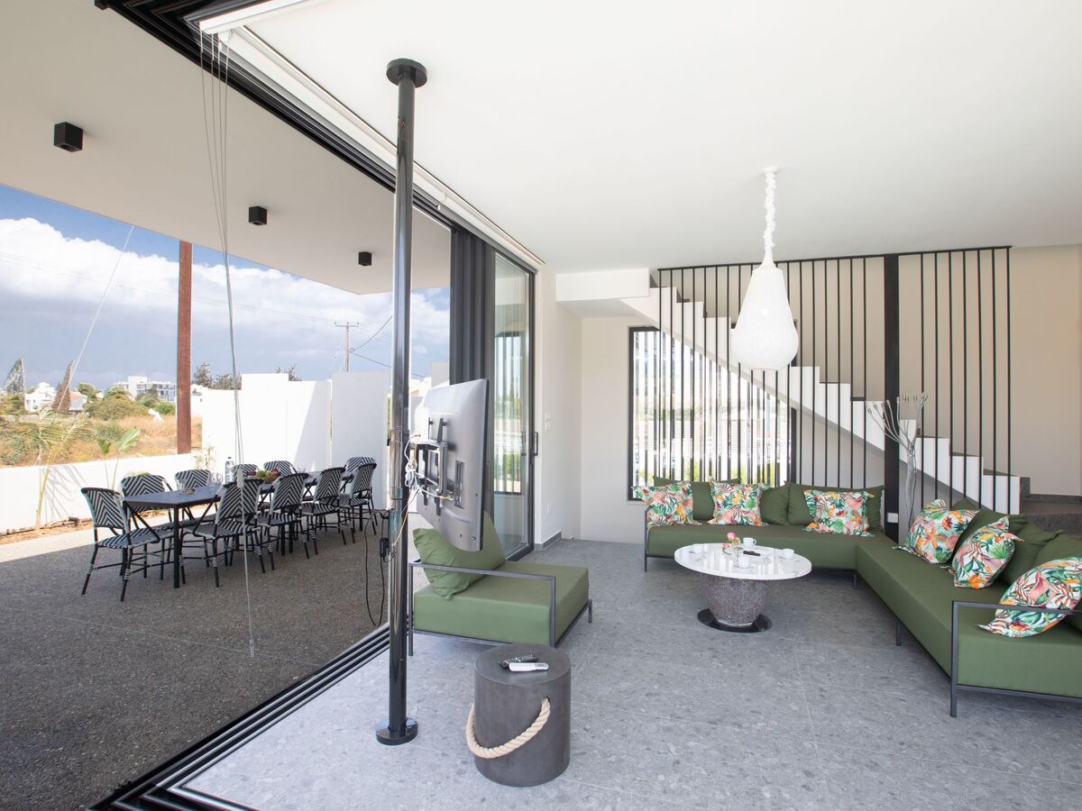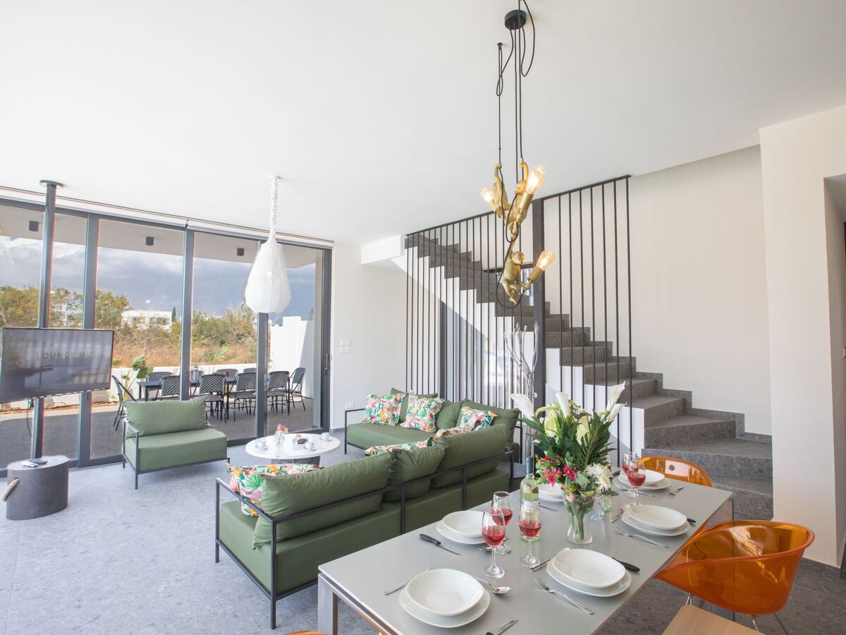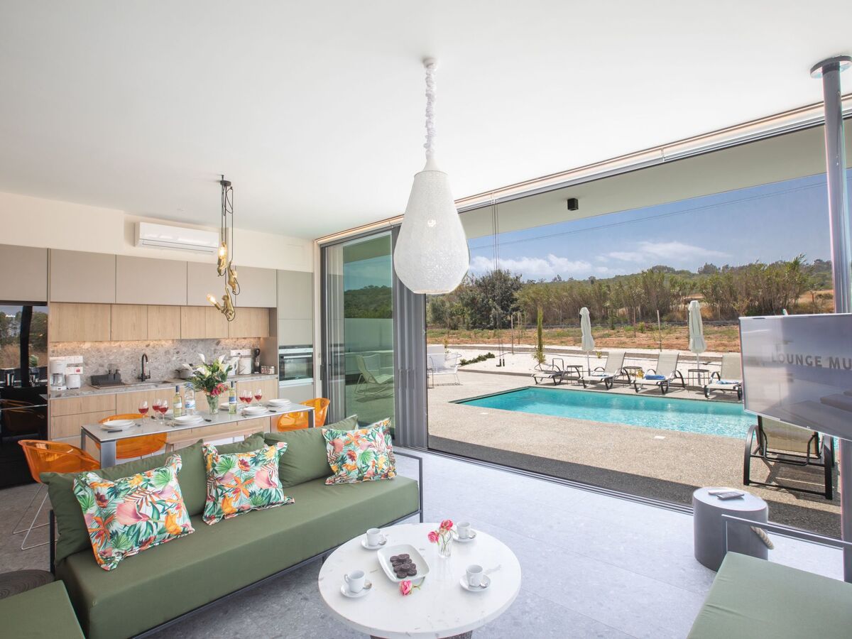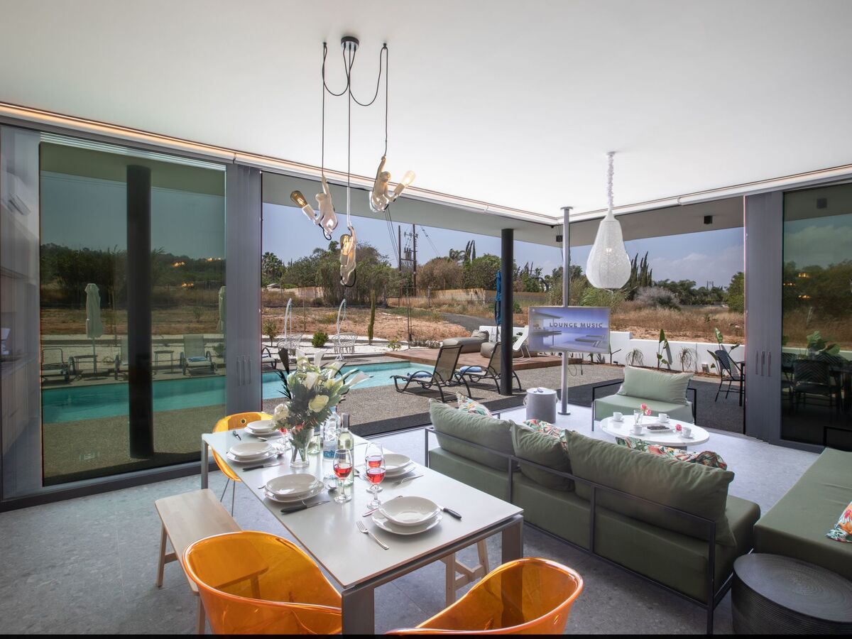 As you enter the villa, you will find the contemporary and spacious open-plan ground floor, living room, kitchen and dining area, all surrounded by large sliding patio doors that lead to the garden and pool.