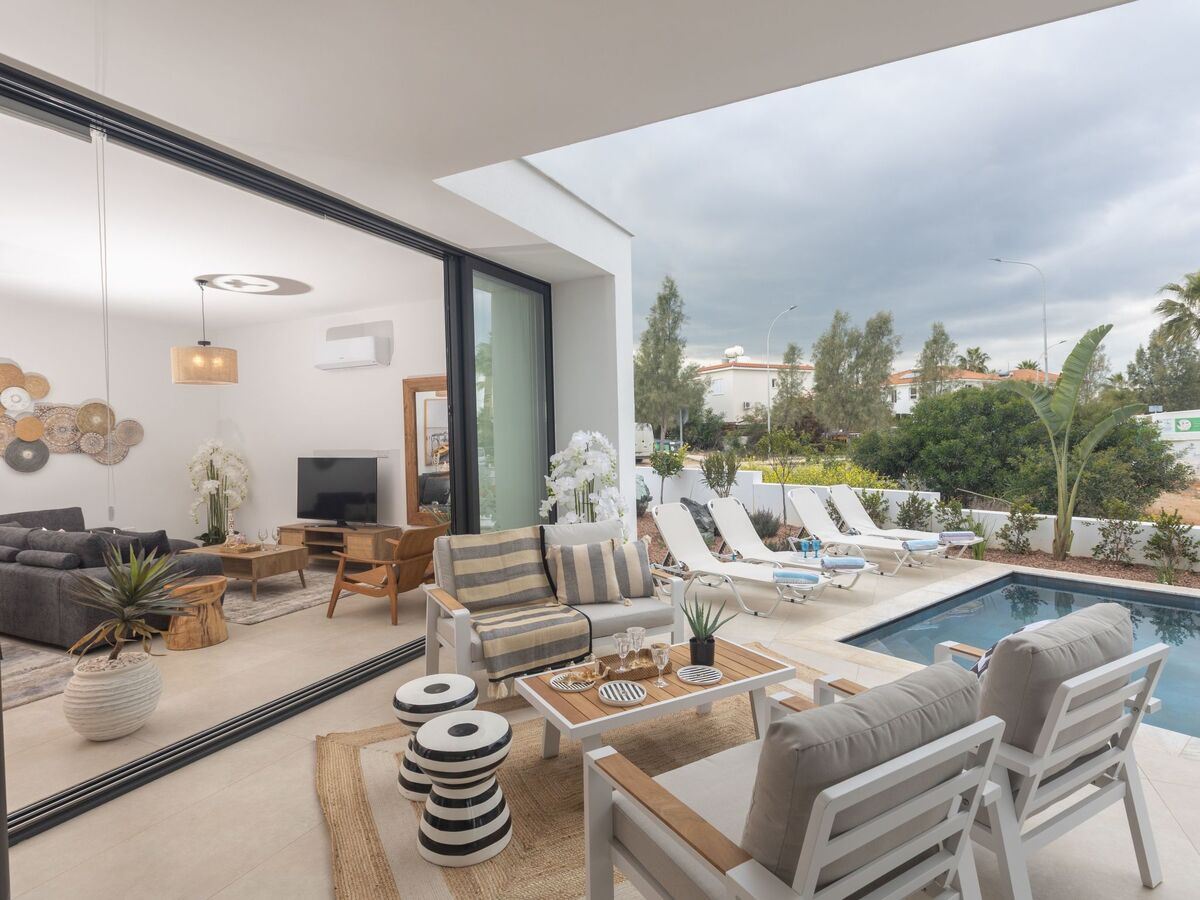 Step outside to relax by your private outdoor pool, perfect for enjoying the sunny Mediterranean climate.