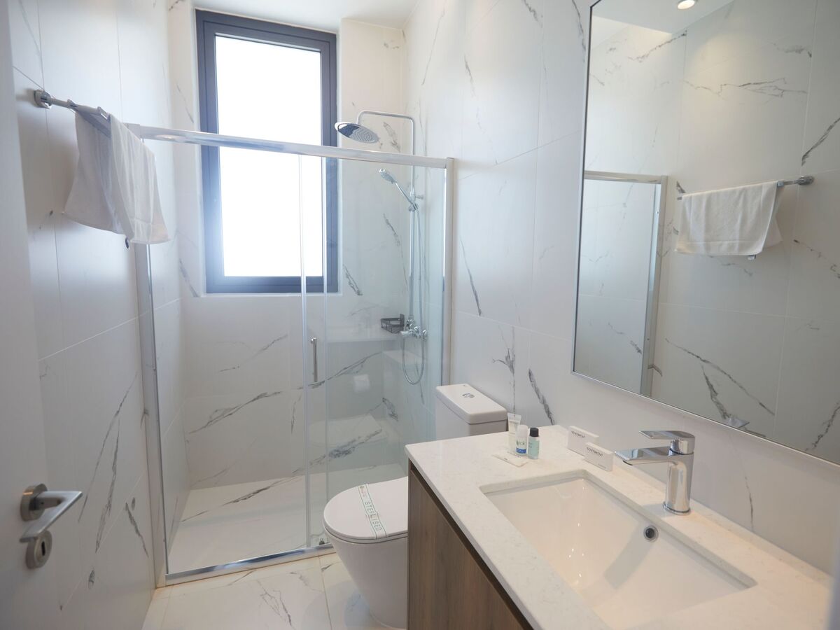 The main bathroom features a shower and WC