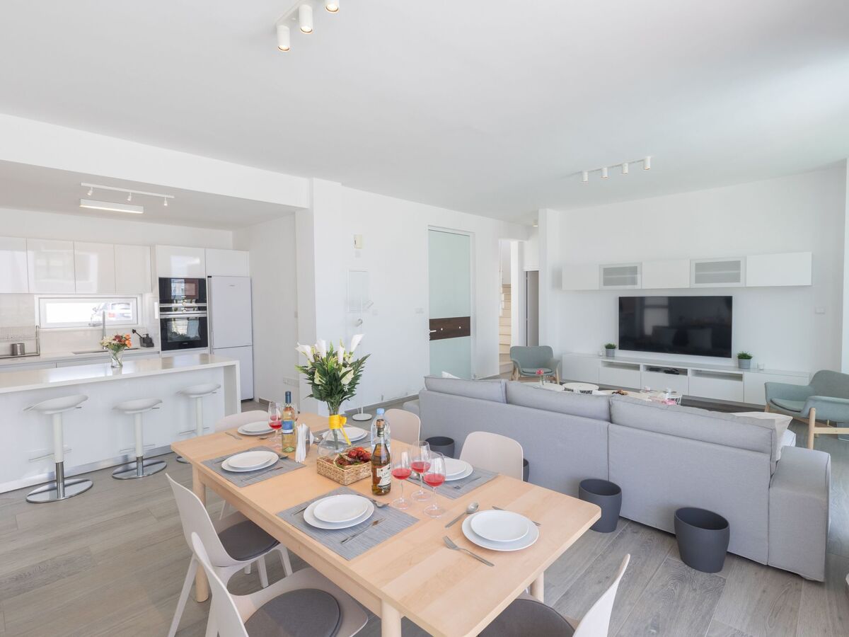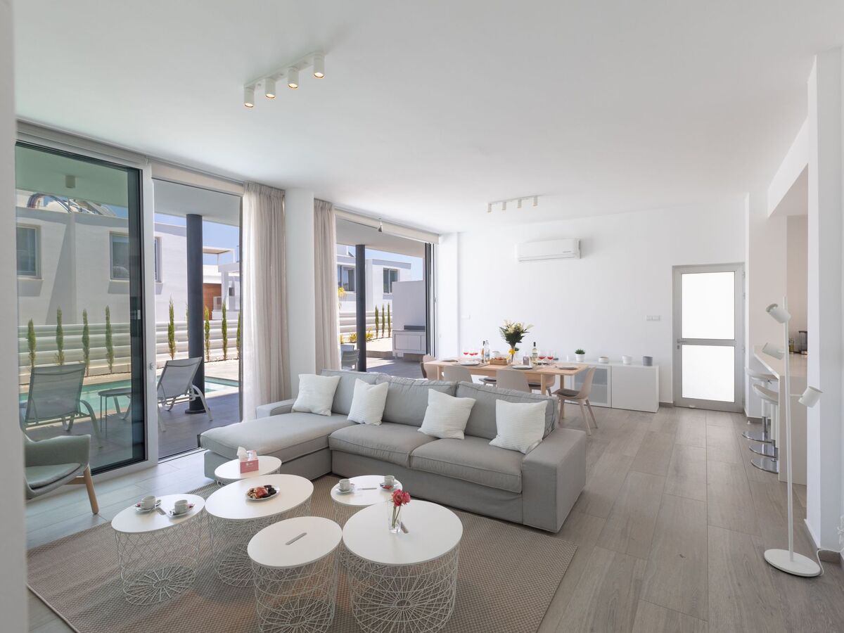 As you walk in to the villa, you will find the open-plan living room, kitchen and dining area.