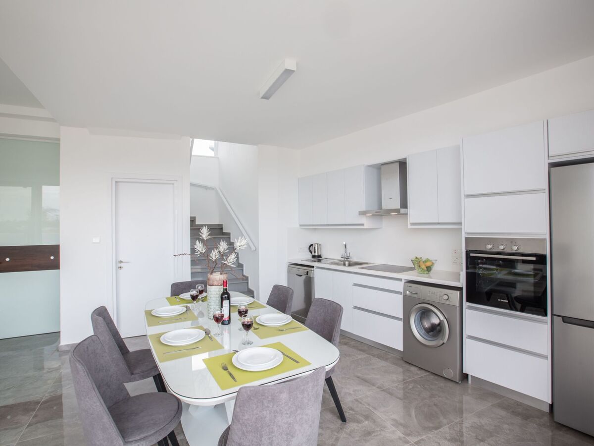 The dining area has seating for 6 persons and the modern fully fitted kitchen is equipped with all appliances.