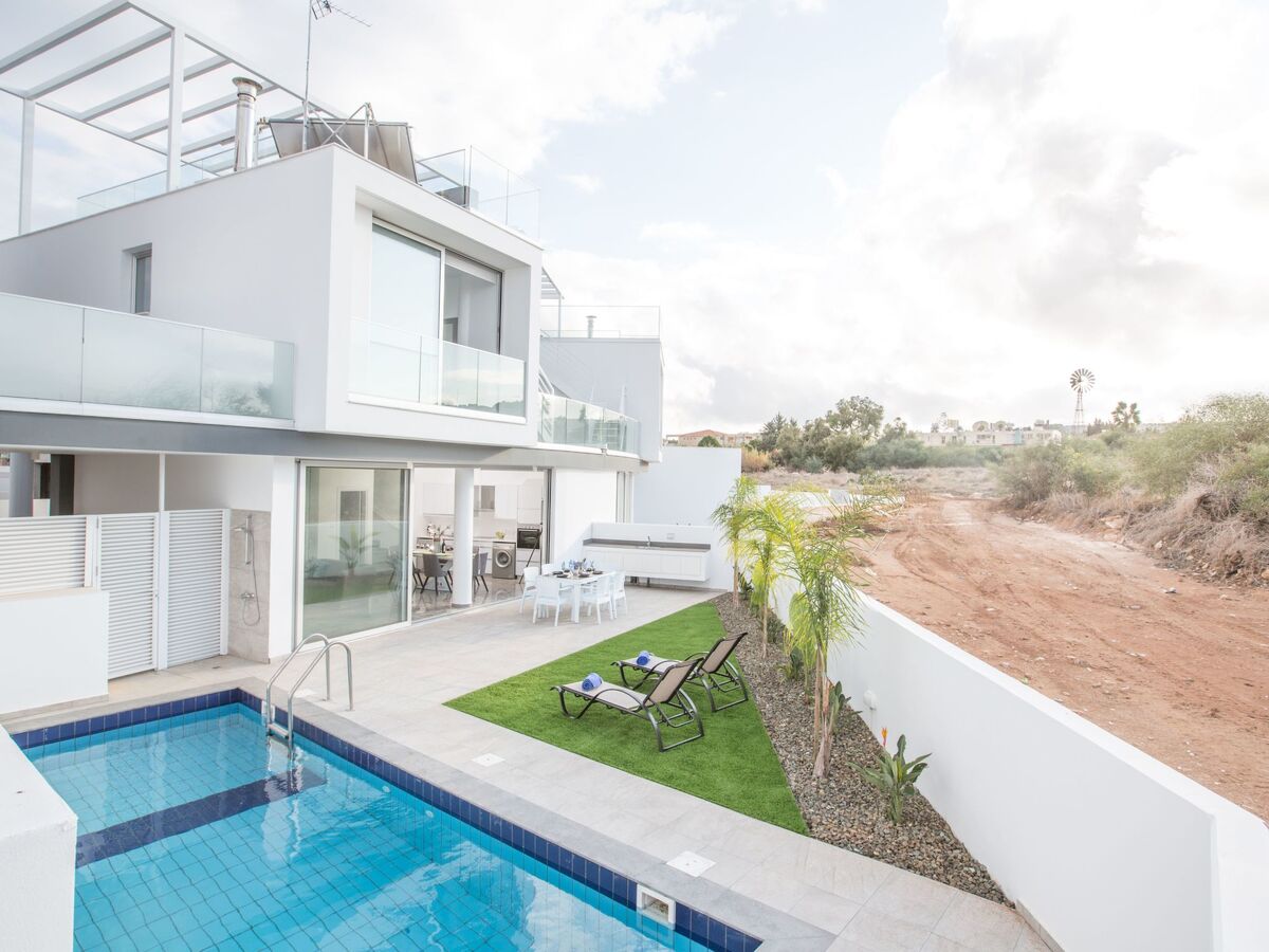 This Brand New contemporary 2 bedroom villa is located in the popular resort area of Protaras and is just a 5 minute walk to the nearest beach.