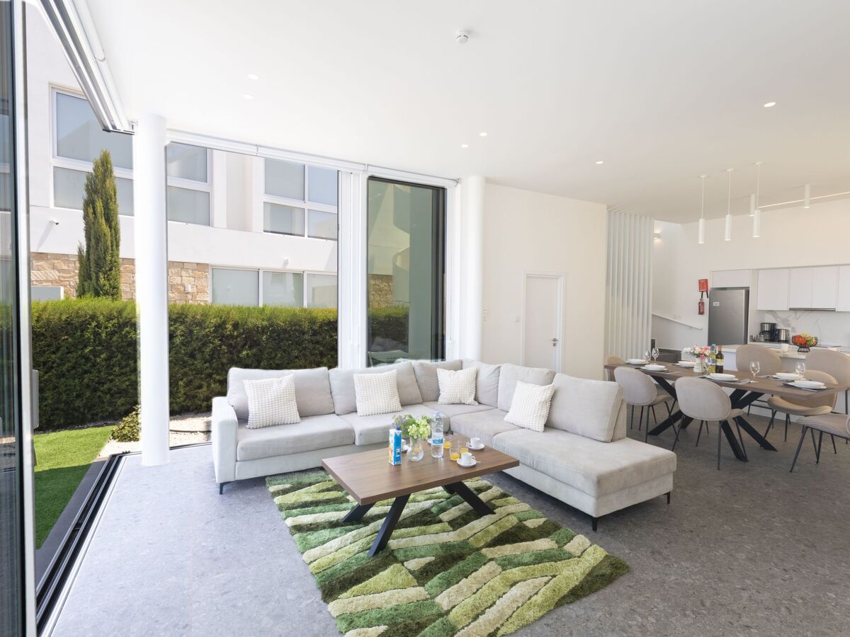 En entrant dans la villa, vous découvrirez un rez-de-chaussée moderne et ouvert, entouré de portes-fenêtres pliantes donnant accès au jardin et à la piscine, qui respire la classe et le luxe et vous donne immédiatement l'impression d'être chez vous.