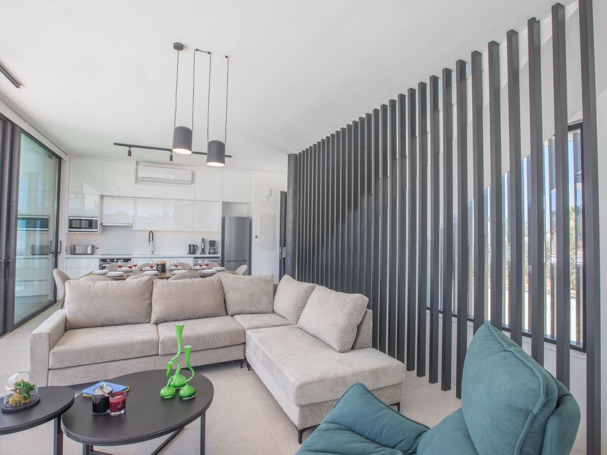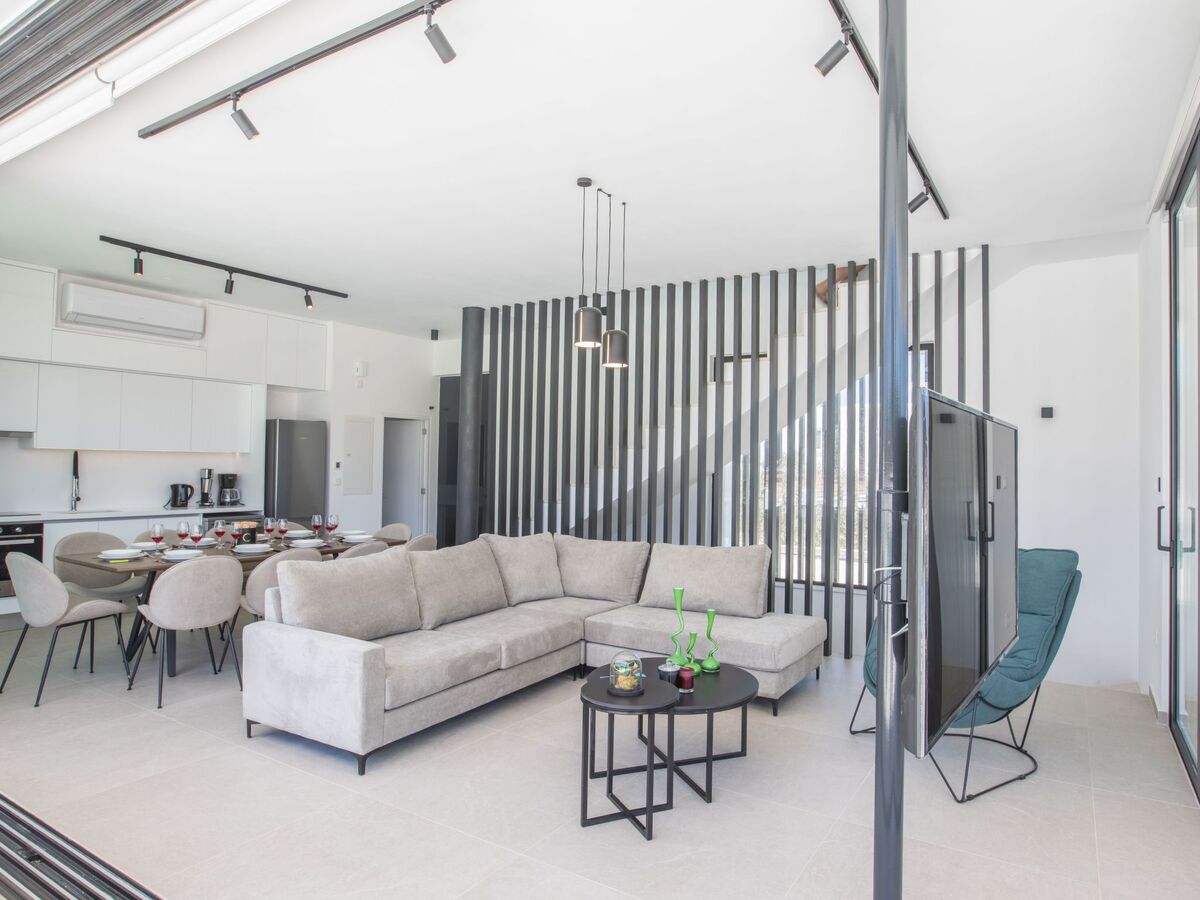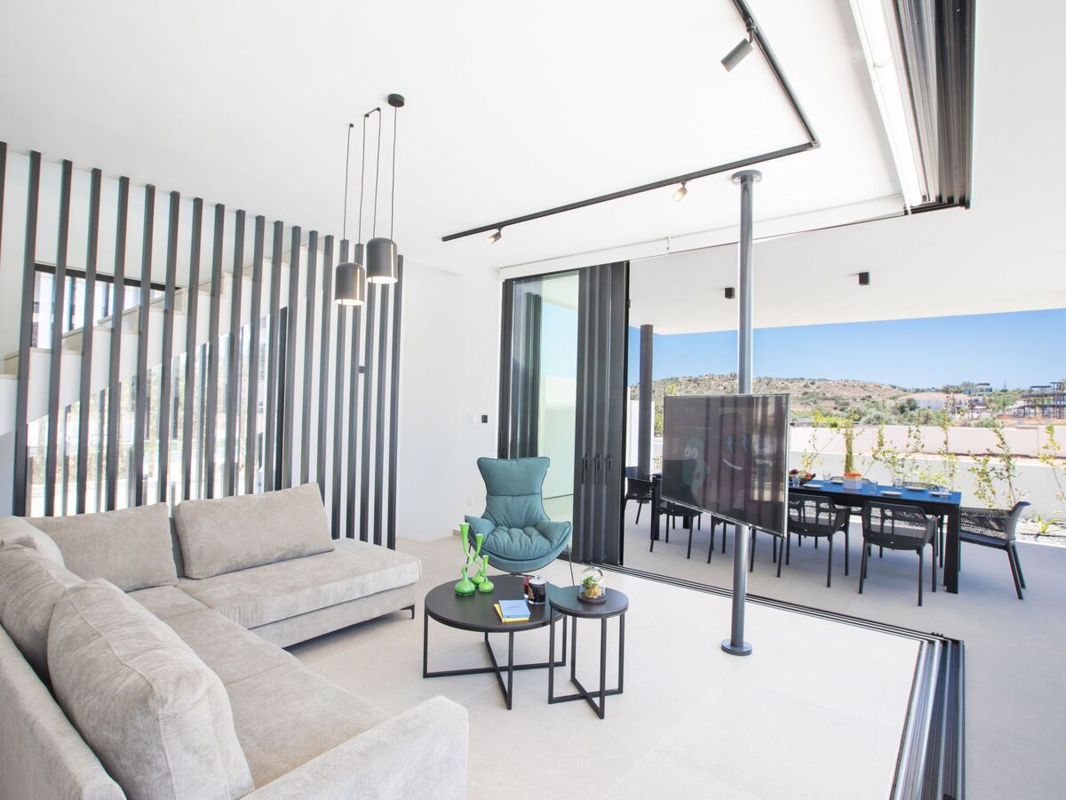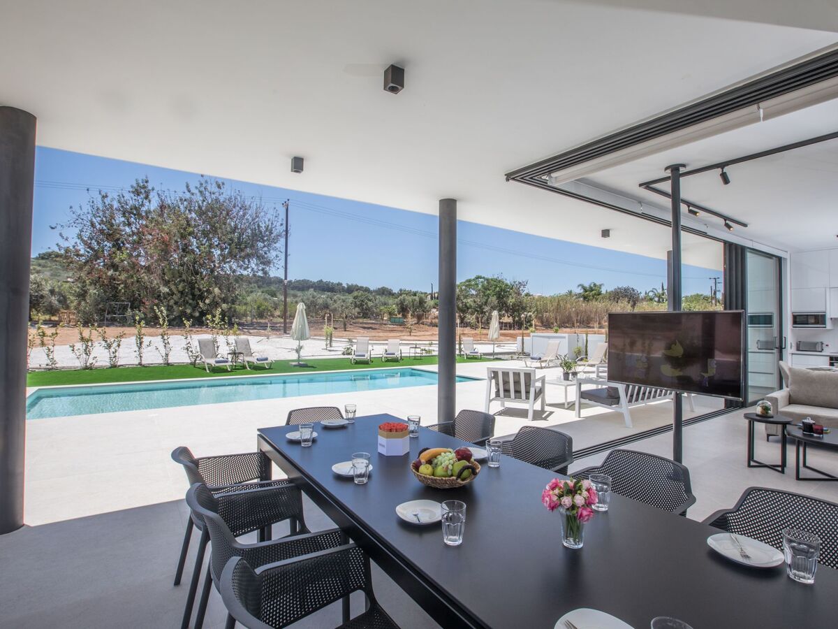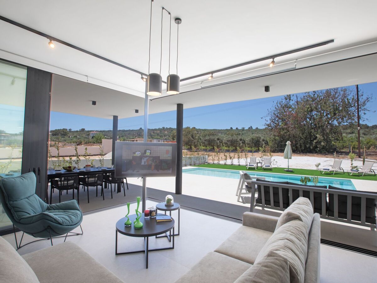 As you enter the villa, you will find the spacious, open-plan living room, kitchen and dining area, all surrounded by large bi-fold patio doors leading to the garden and pool.