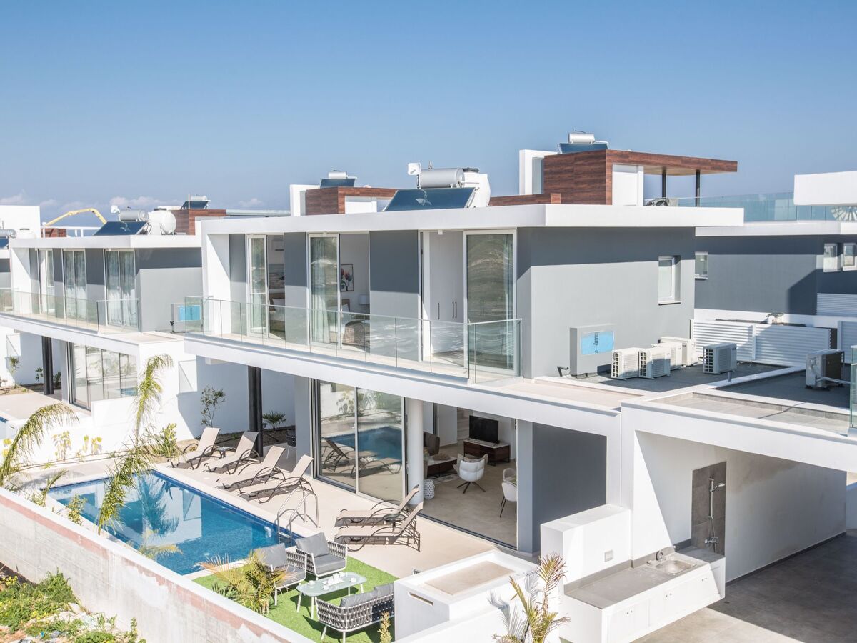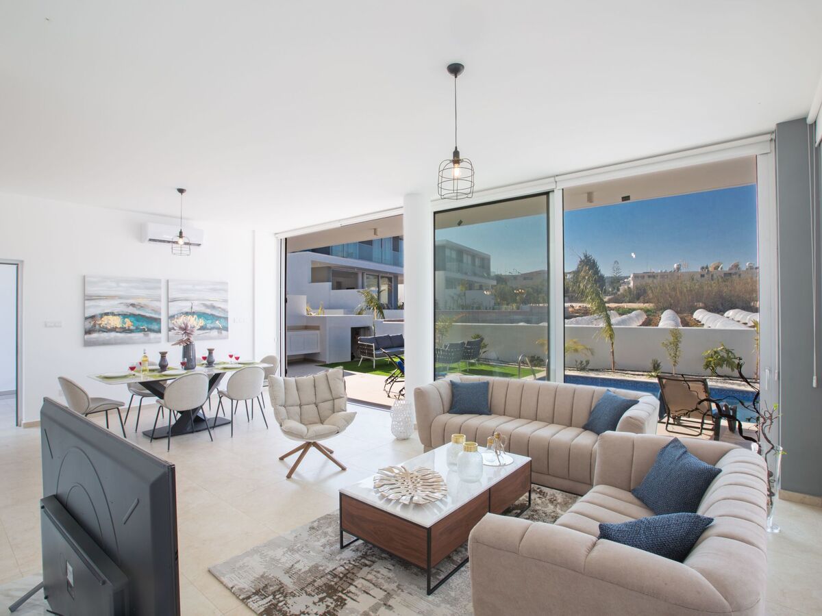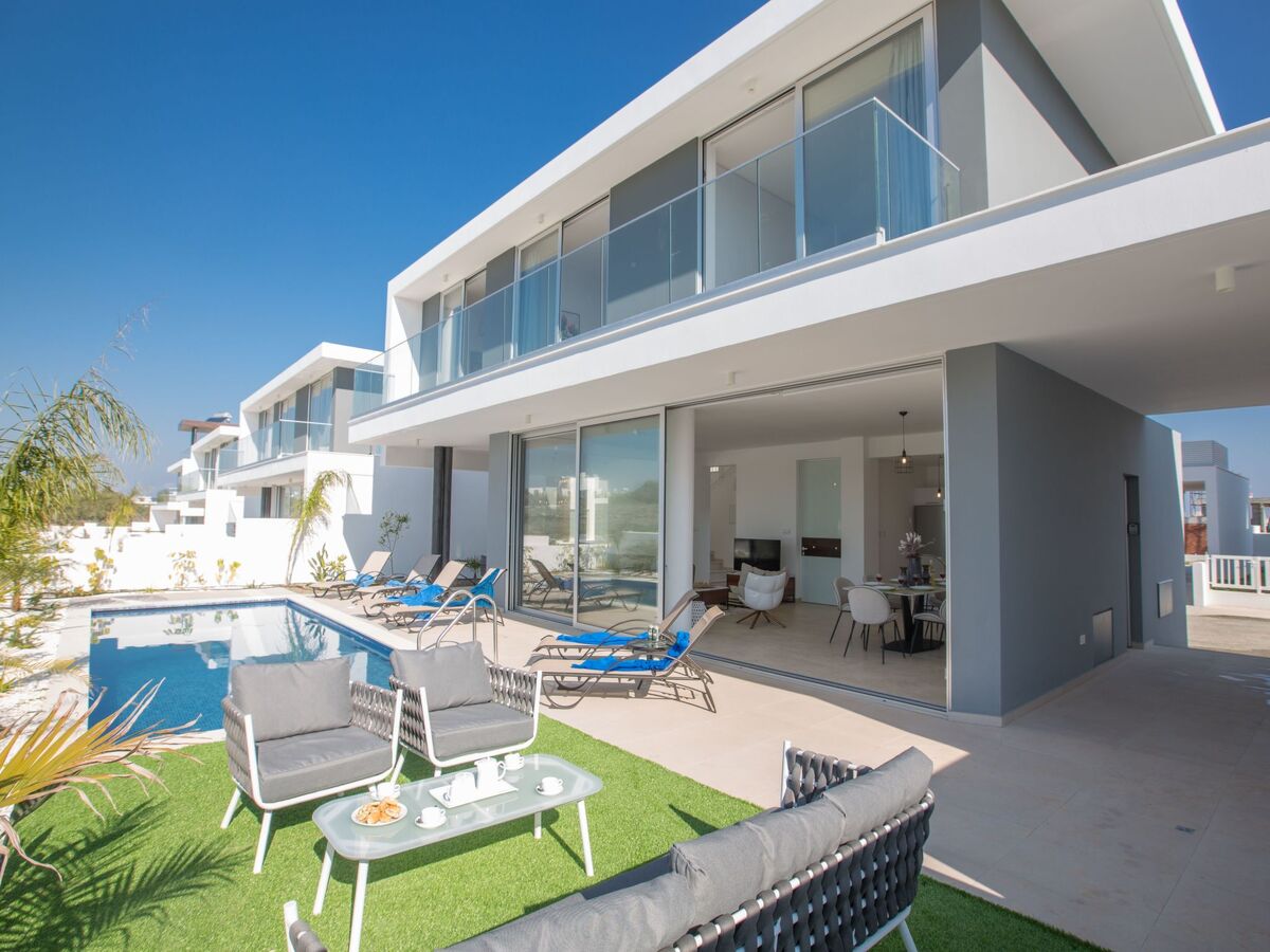 This Brand New contemporary villa is located in the popular resort area of Protaras and is just a 5 minute walk to the nearest beach and with a variety of bars, restaurants and shops close-by, this is great central location for getting around without the need for a car.