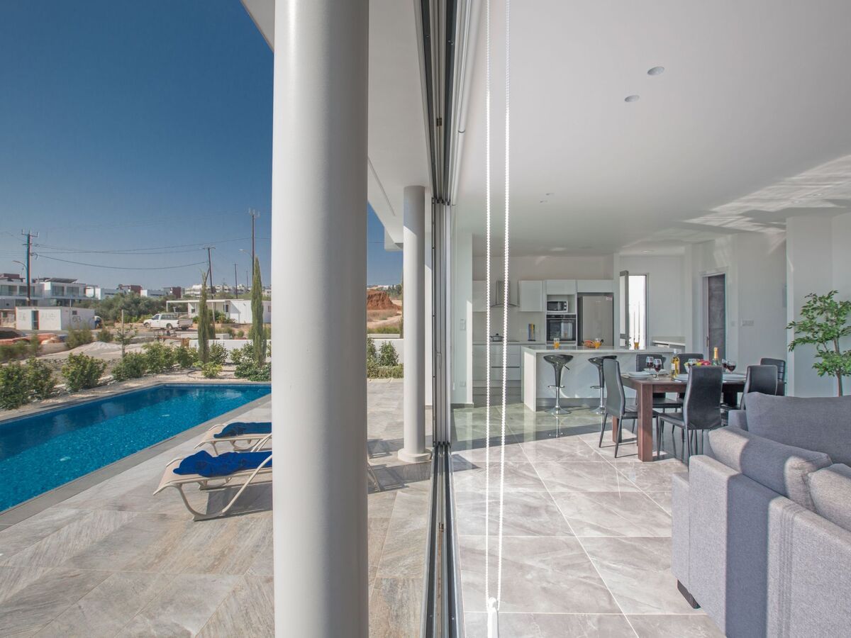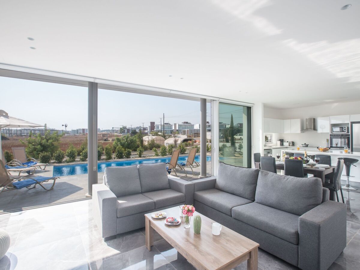 As you walk in to the villa, you will find the open-plan living room, kitchen and dining area.