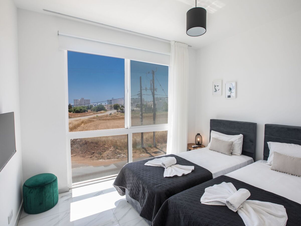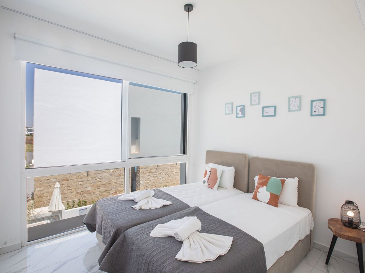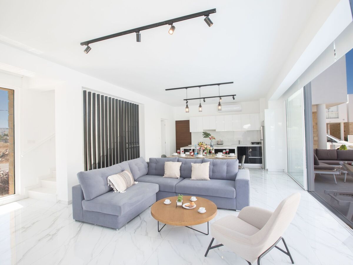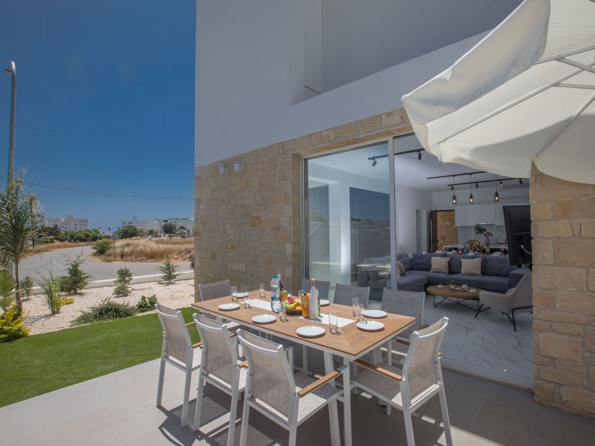 This brand new, luxurious villa is located in the popular resort area of Protaras and is just a 5 minute walk to the beaches, shops, restaurants and bars.