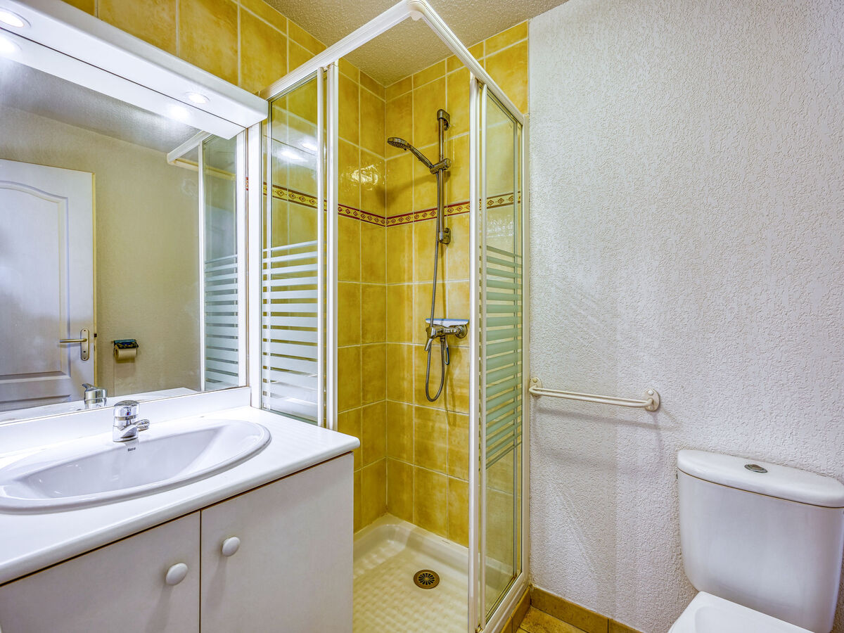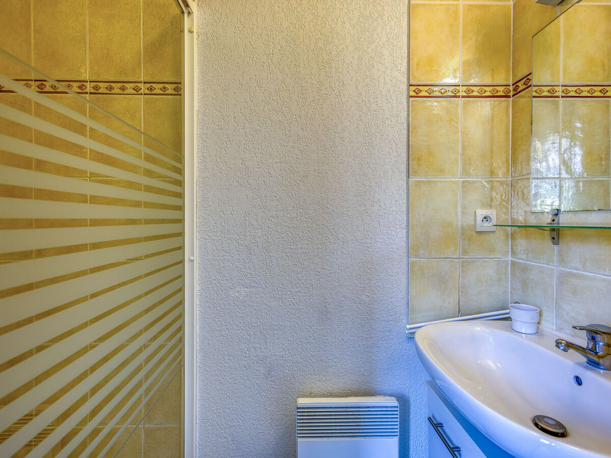 1 chambre avec 1 grand-lit (140 cm), douche.