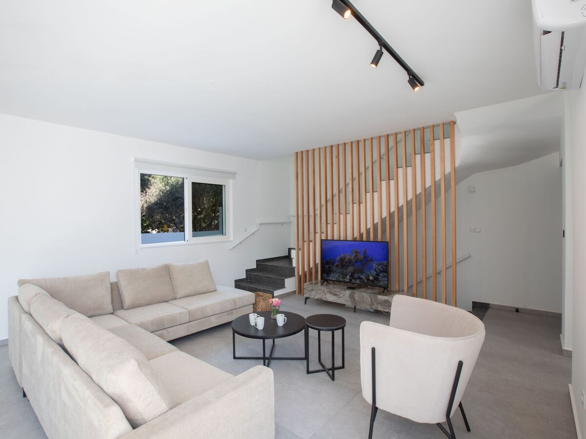 The living room features a comfortable corner sofa, widescreen Smart TV with satellite channels and wi-fi connection.
