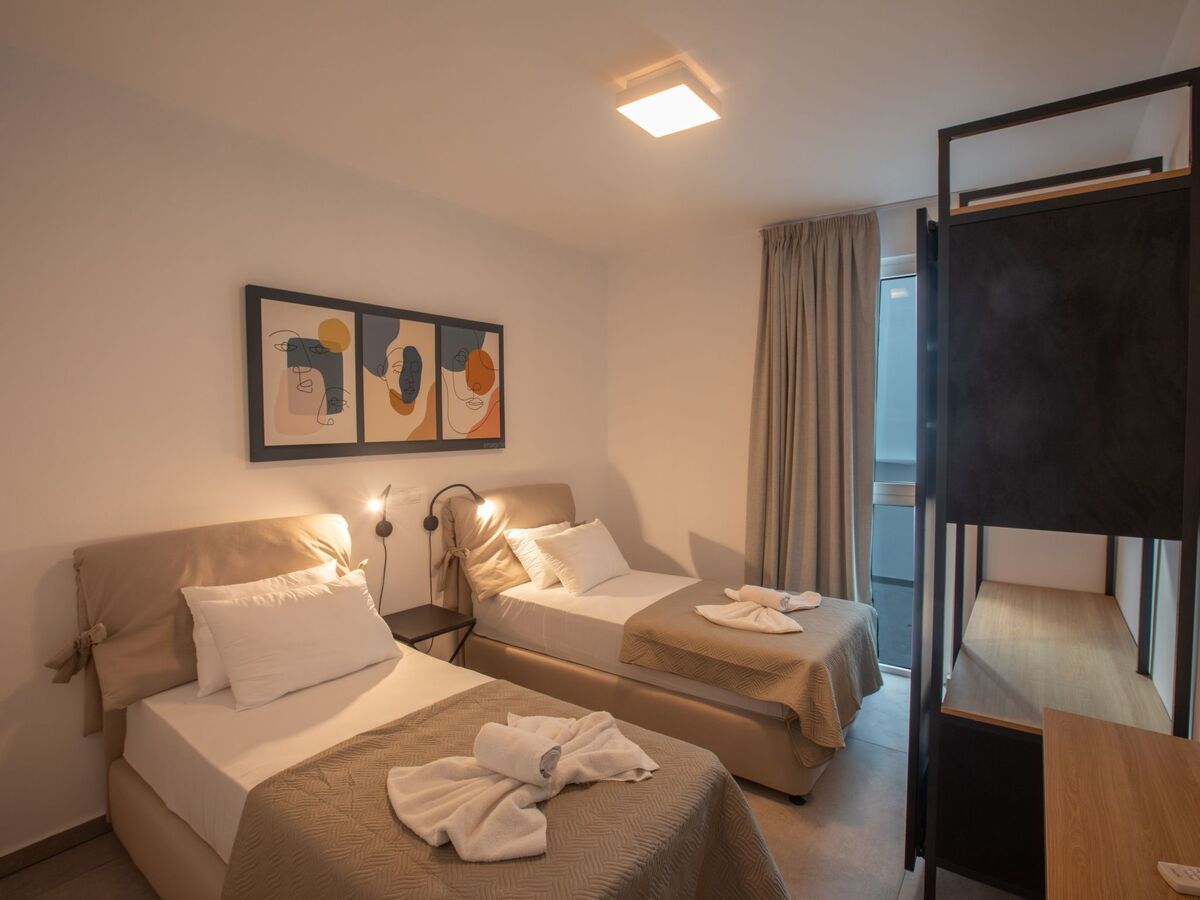 Downstairs, on the lower ground floor level which is accessed from the living room, you will find the remaining bedroom with two single beds and access to the veranda.
