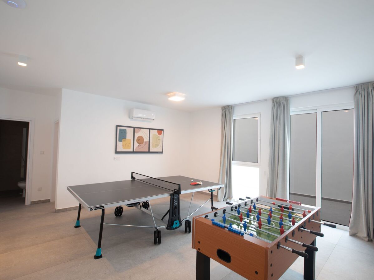 There is another bathroom on this floor with a shower and WC, and a communal area with a full sized football table and table tennis