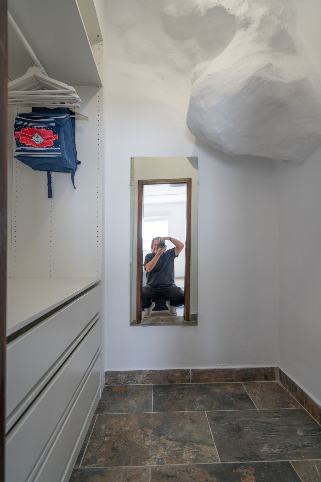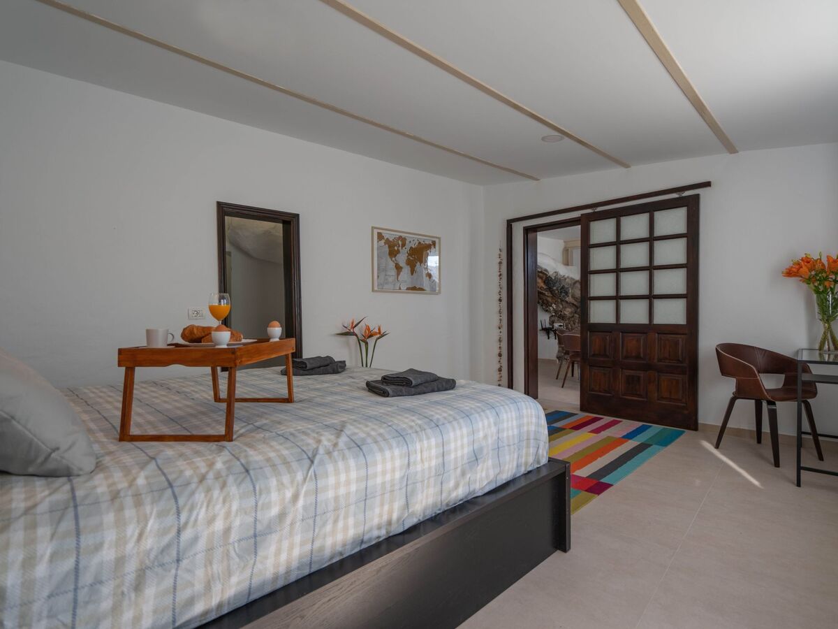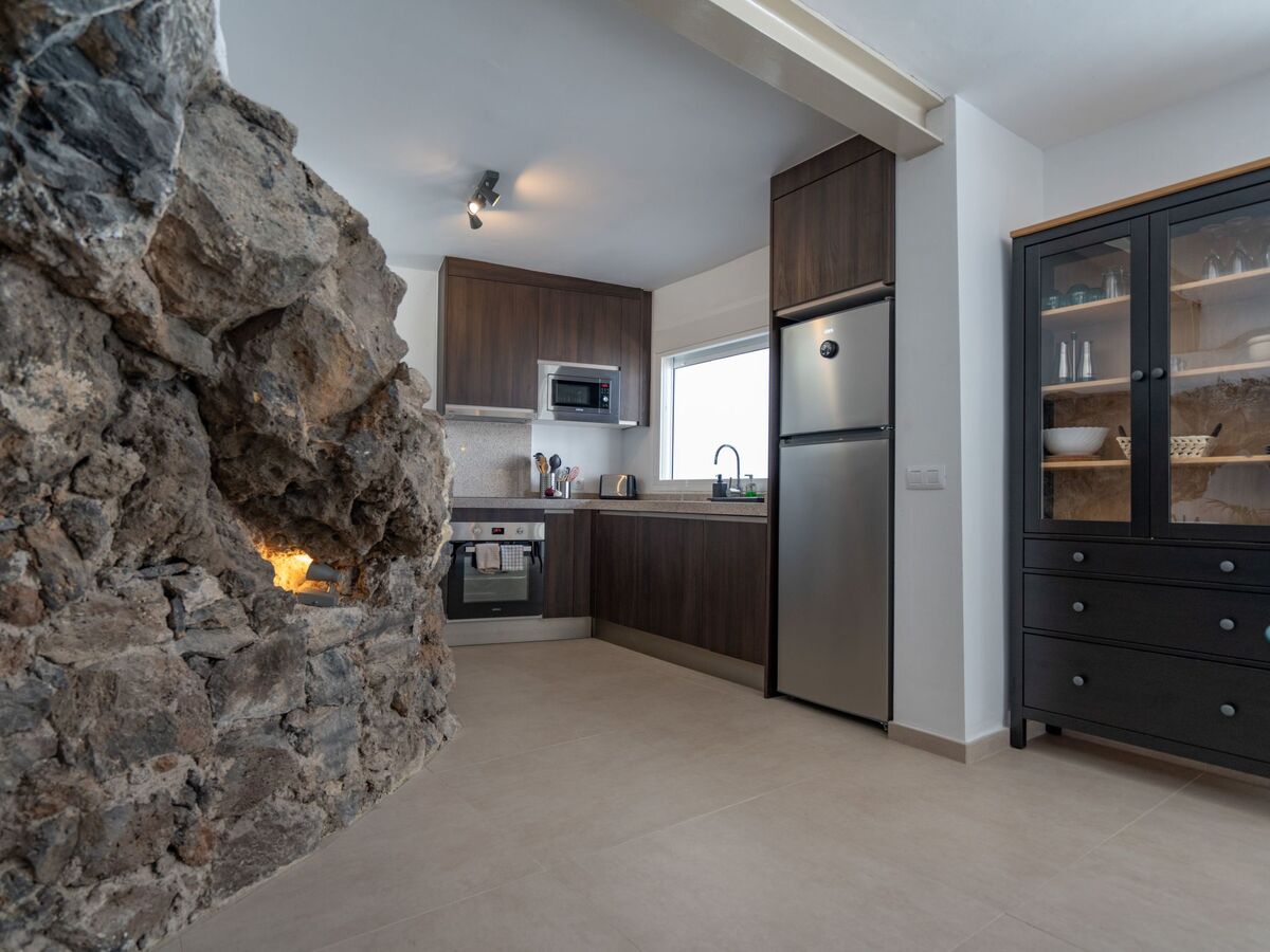 Immediately you realise that you have not booked a normal house: you are in a cave! Volcanic rocks shape the kitchen which partly uses real rocks as a worktop.