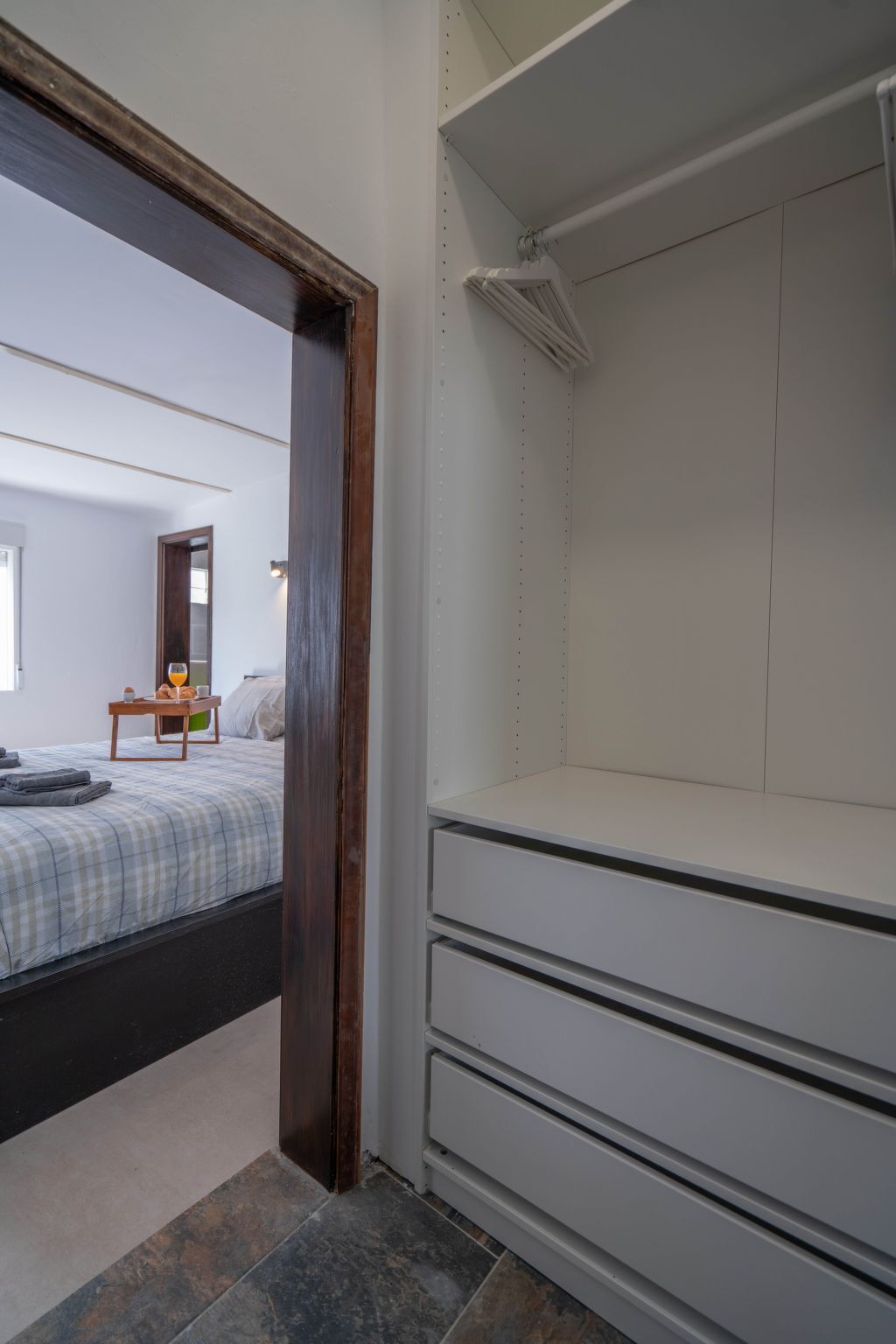 There is a desk so you can work or read, and a spacious built-in wardrobe.
