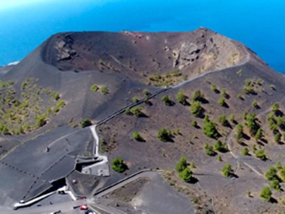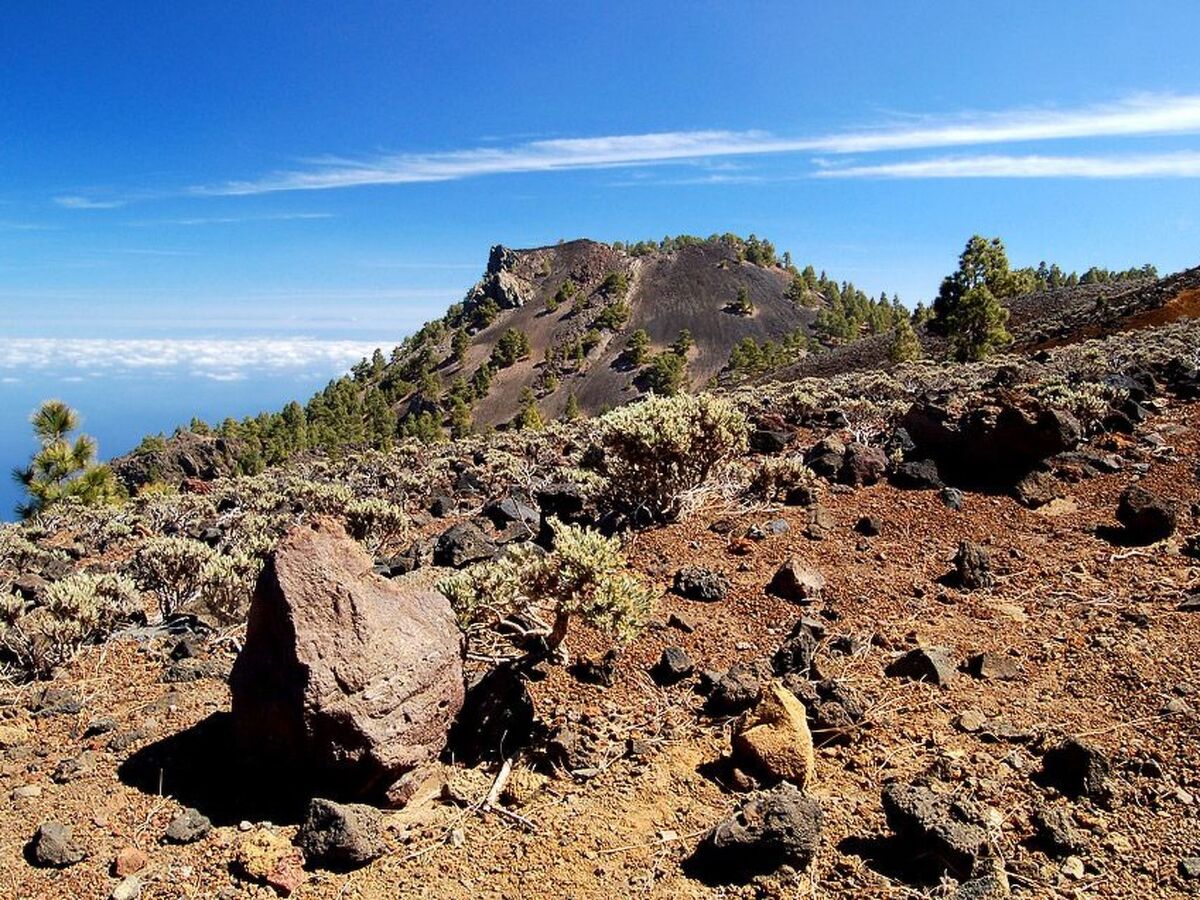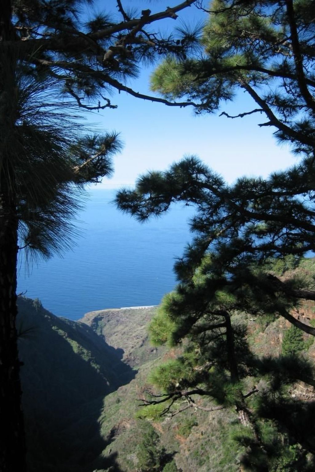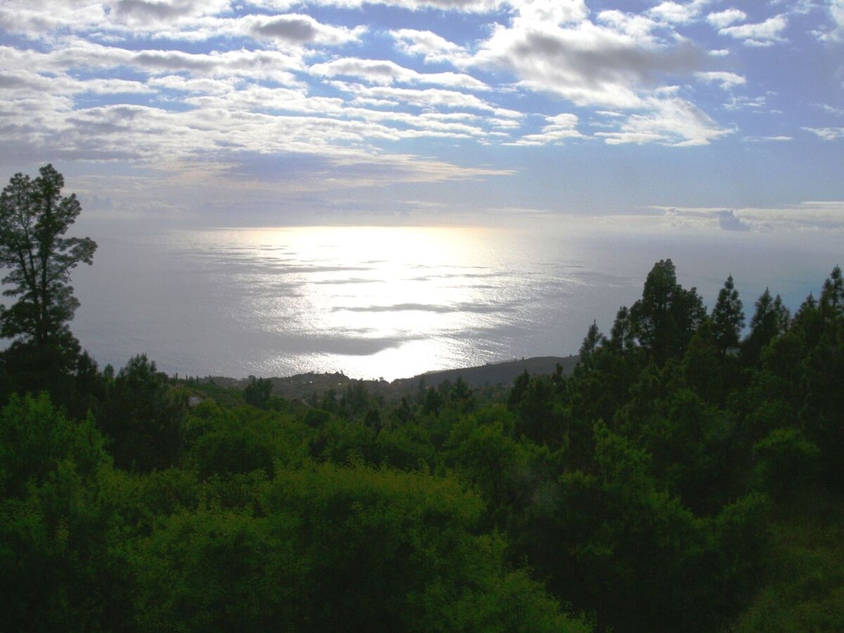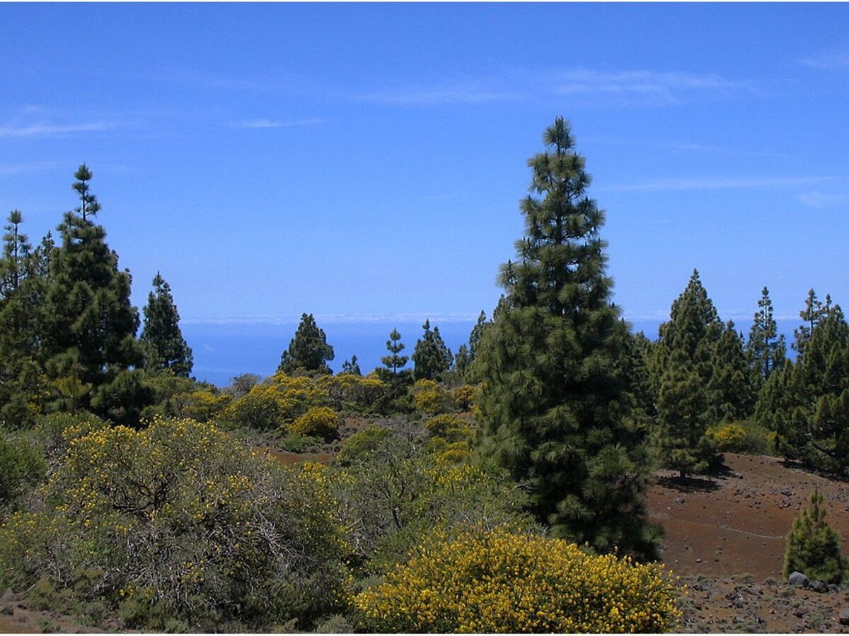 Une vue panoramique imprenable sur l'océan Atlantique et les pentes boisées de la "réserve naturelle" Caldera de Taburiente ".