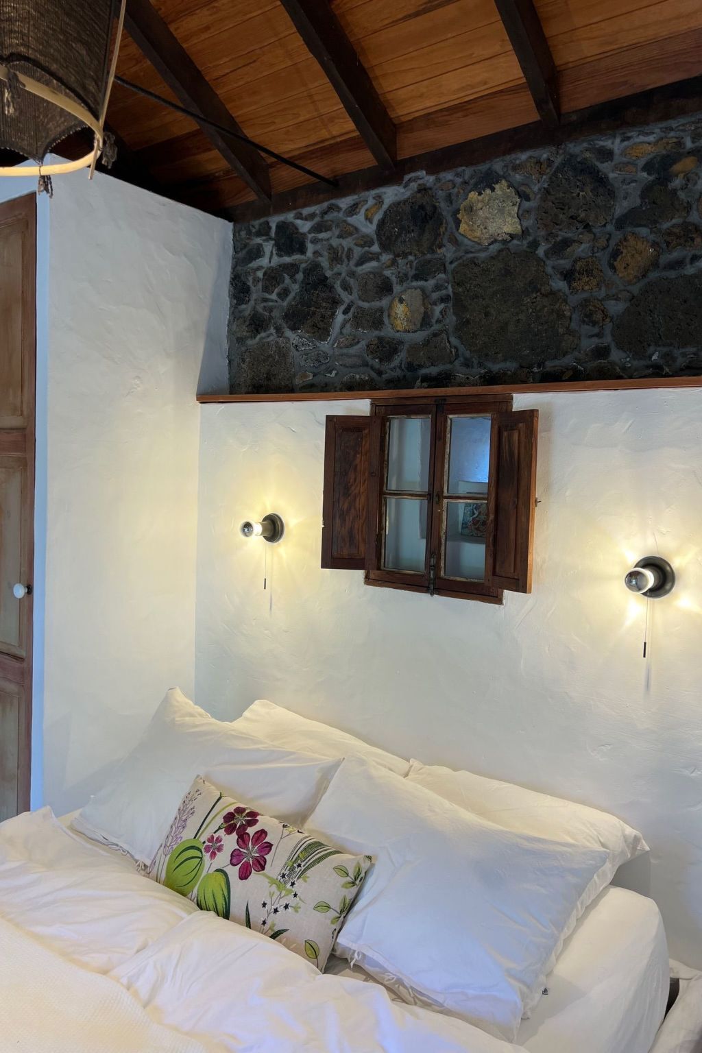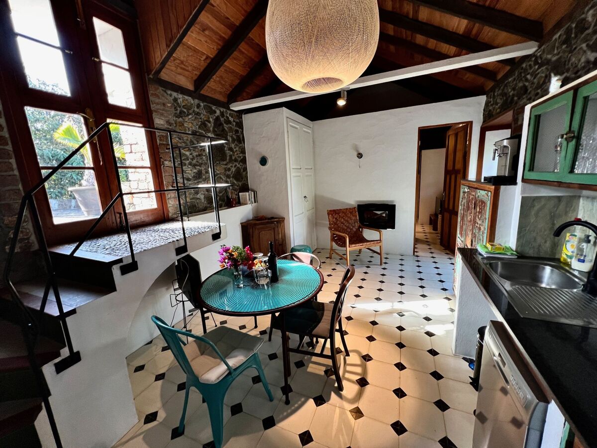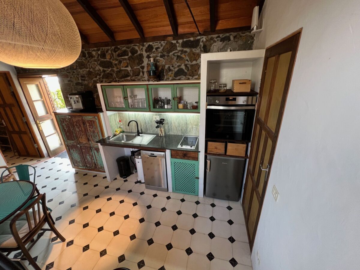 Walk past the fountain through part of the lovingly landscaped botanical garden and head straight for the 60 square metre typical Canarian country house.