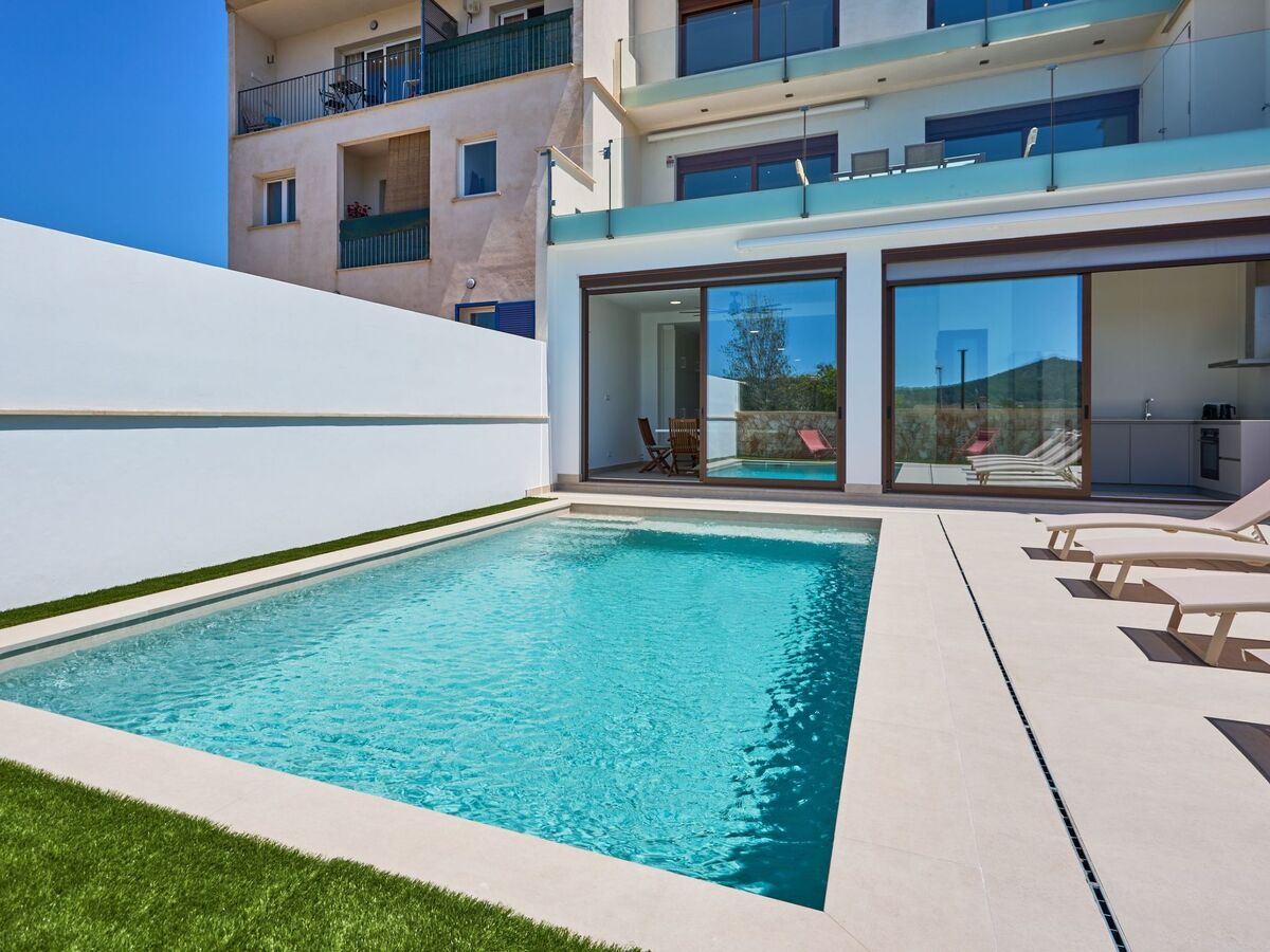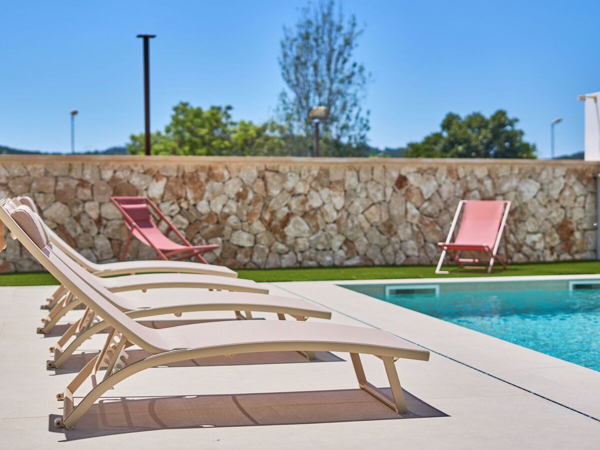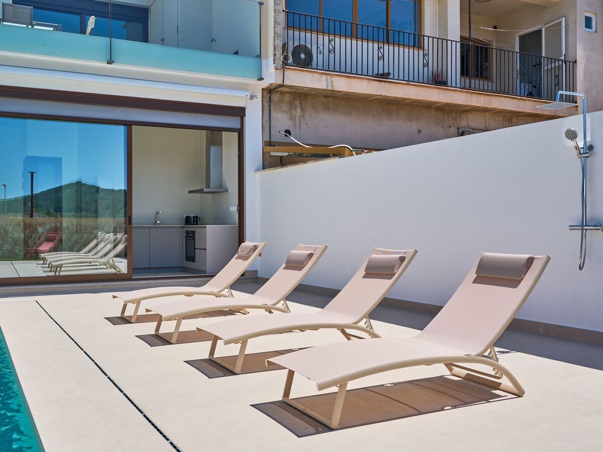 In this area is the pool with awning and a wide access staircase where you can sit and relax in the water like on a beach.