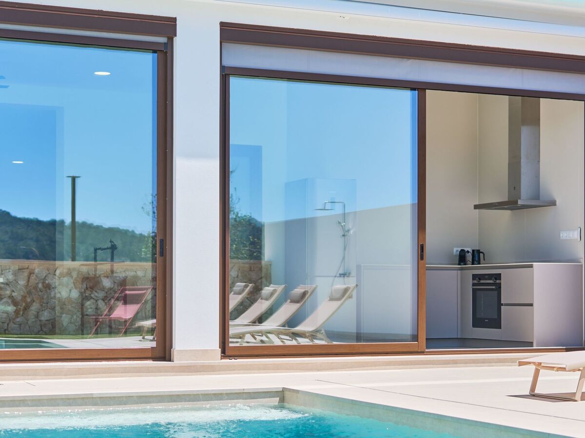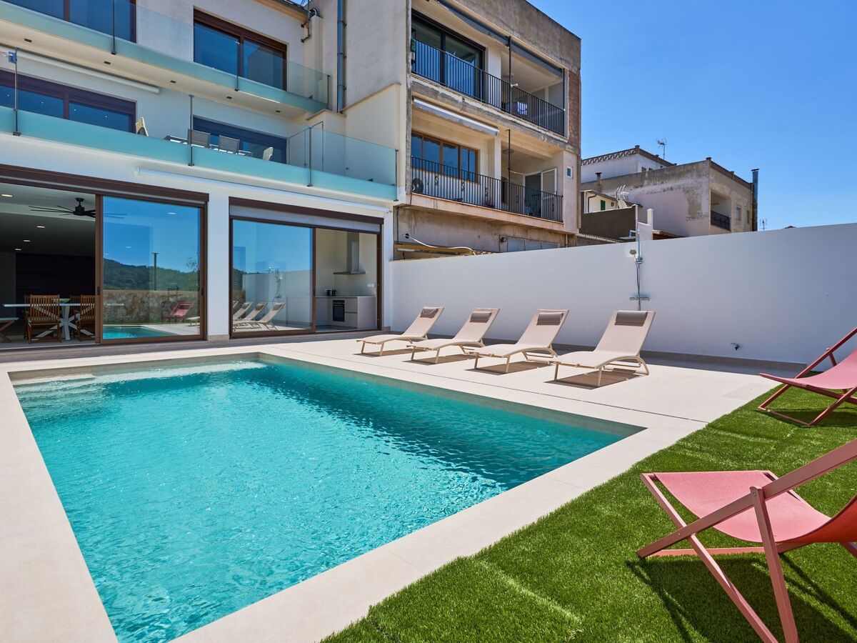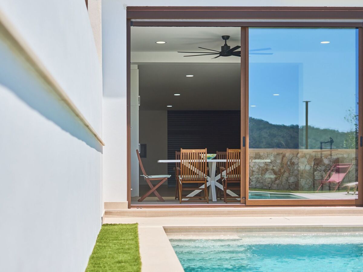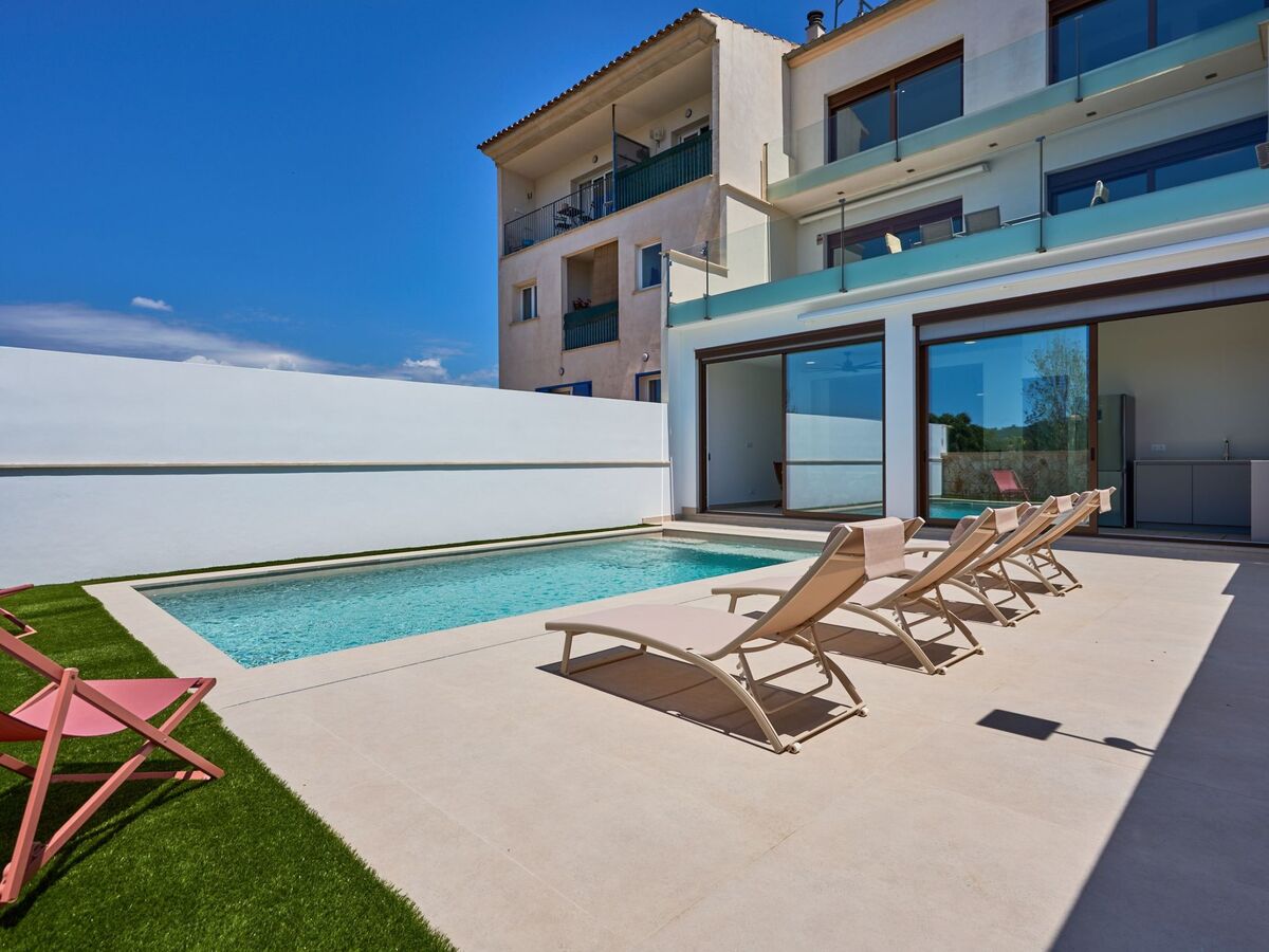 In this area is the pool with awning and a wide access staircase where you can sit and relax in the water like on a beach.