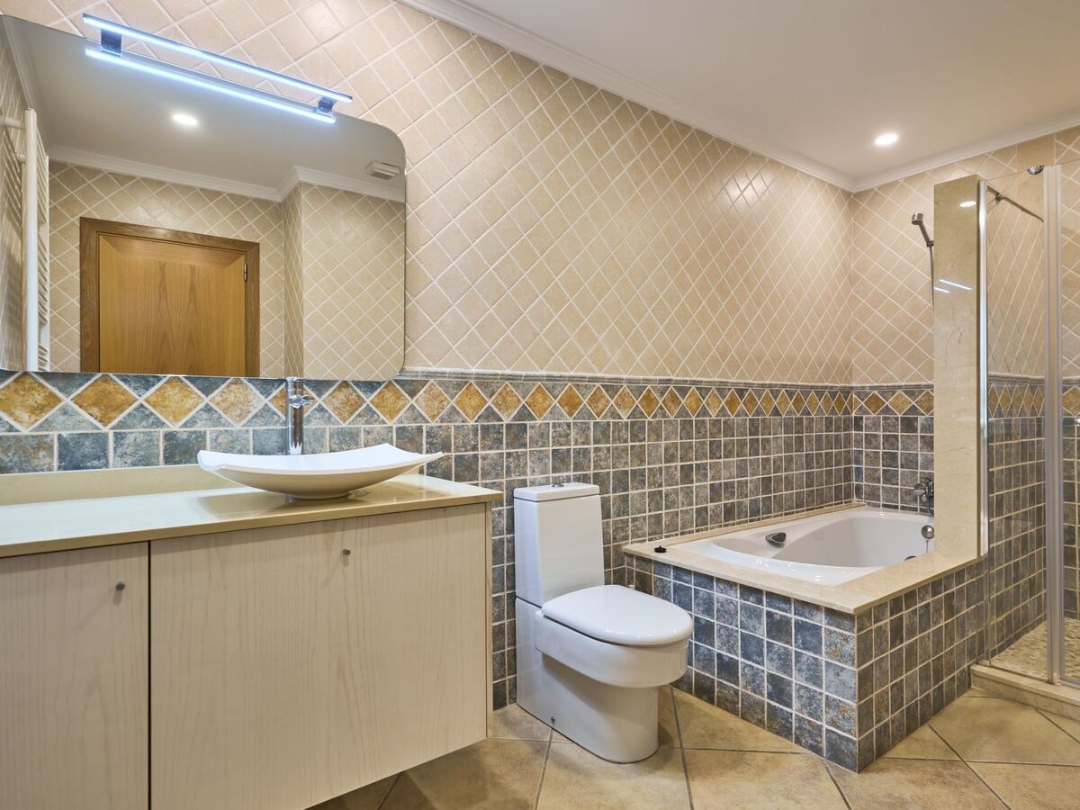 An internal staircase leads to the top floor where the master bedroom with double bed and en-suite bathroom with whirlpool bath and separate shower is located.