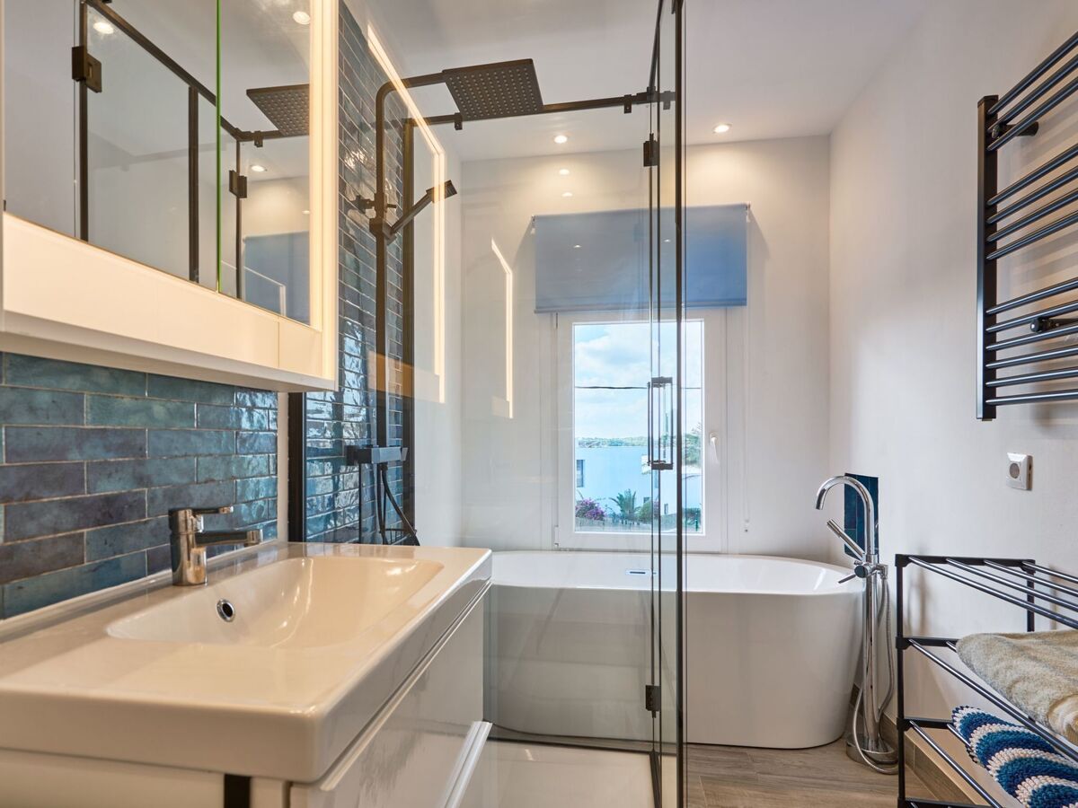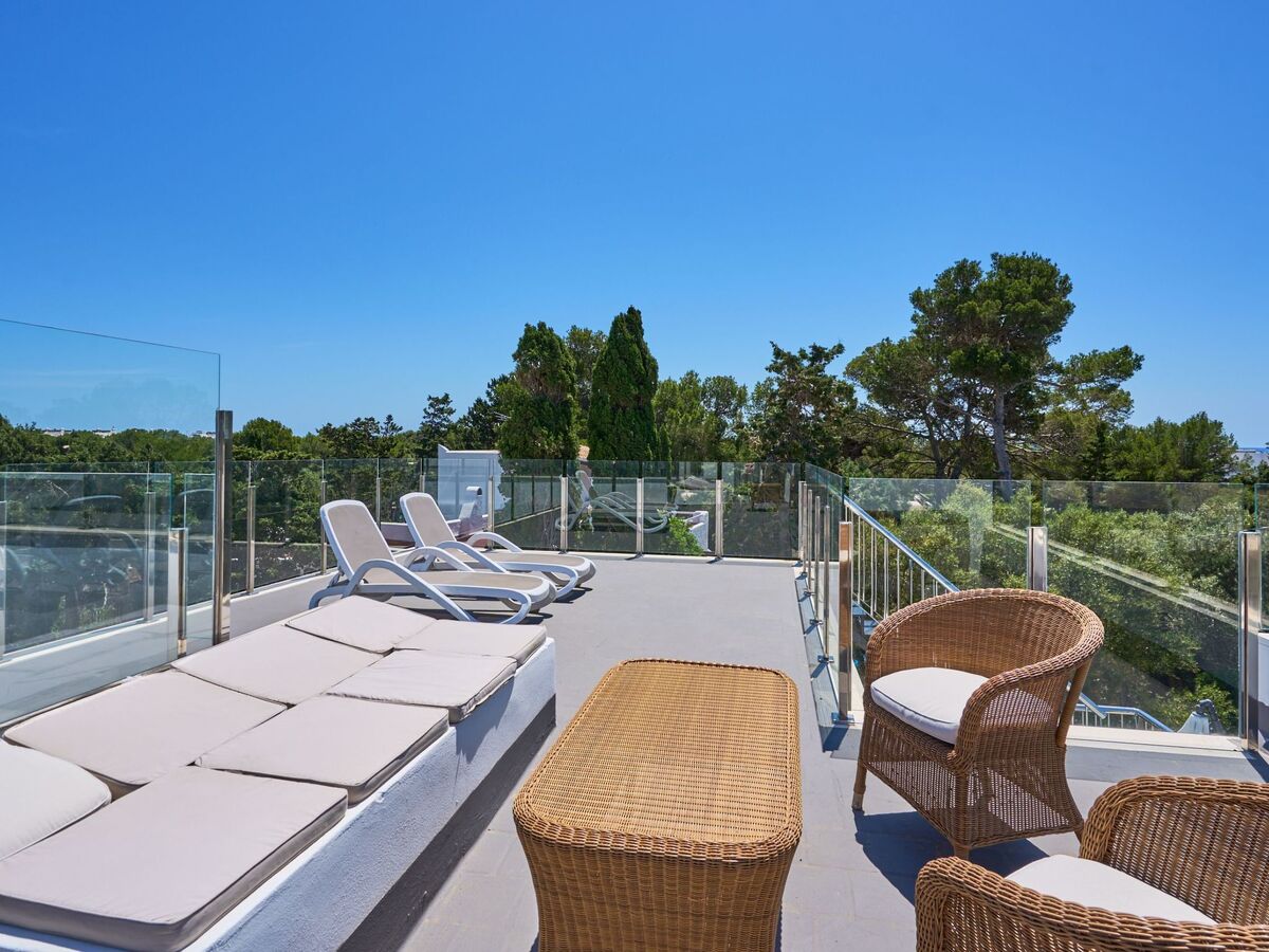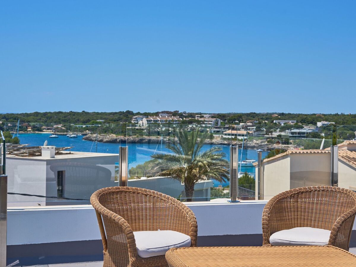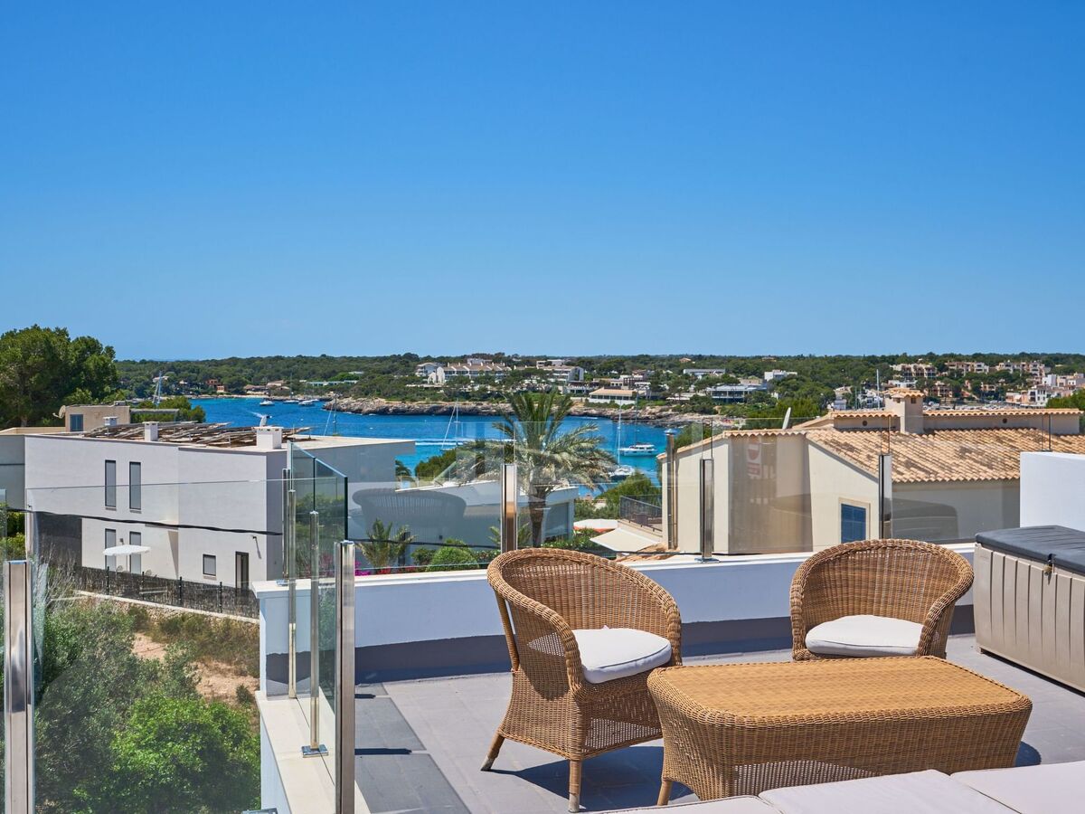 From this terrace, a staircase leads to the roof terrace with chill-out area and marvellous views of Porto Petro.
