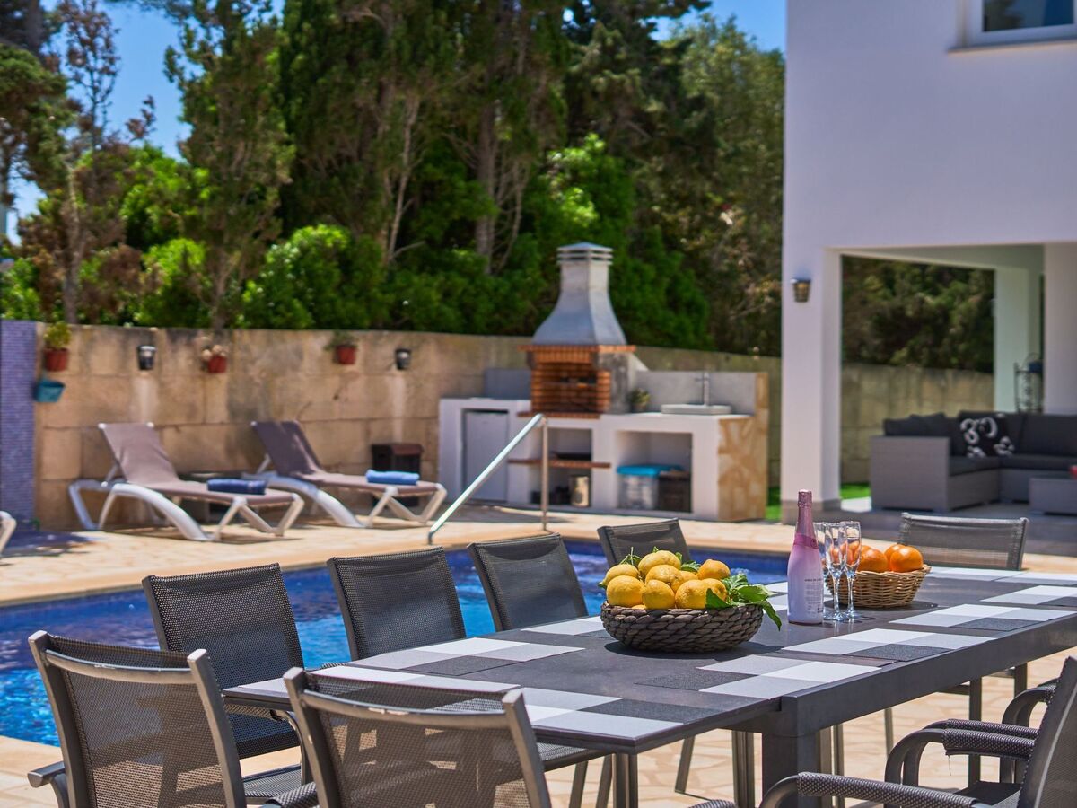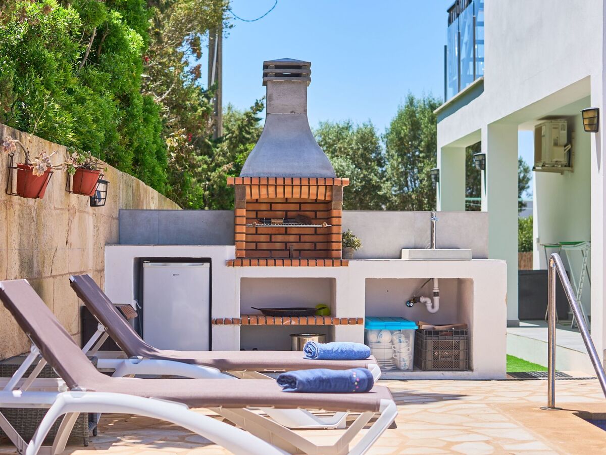 Brick barbecue and porch overlooking the pool.