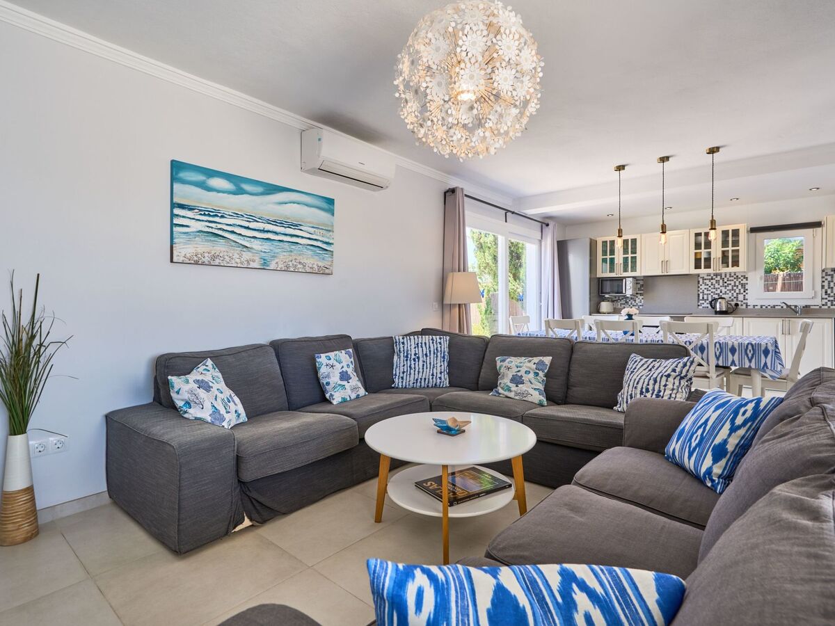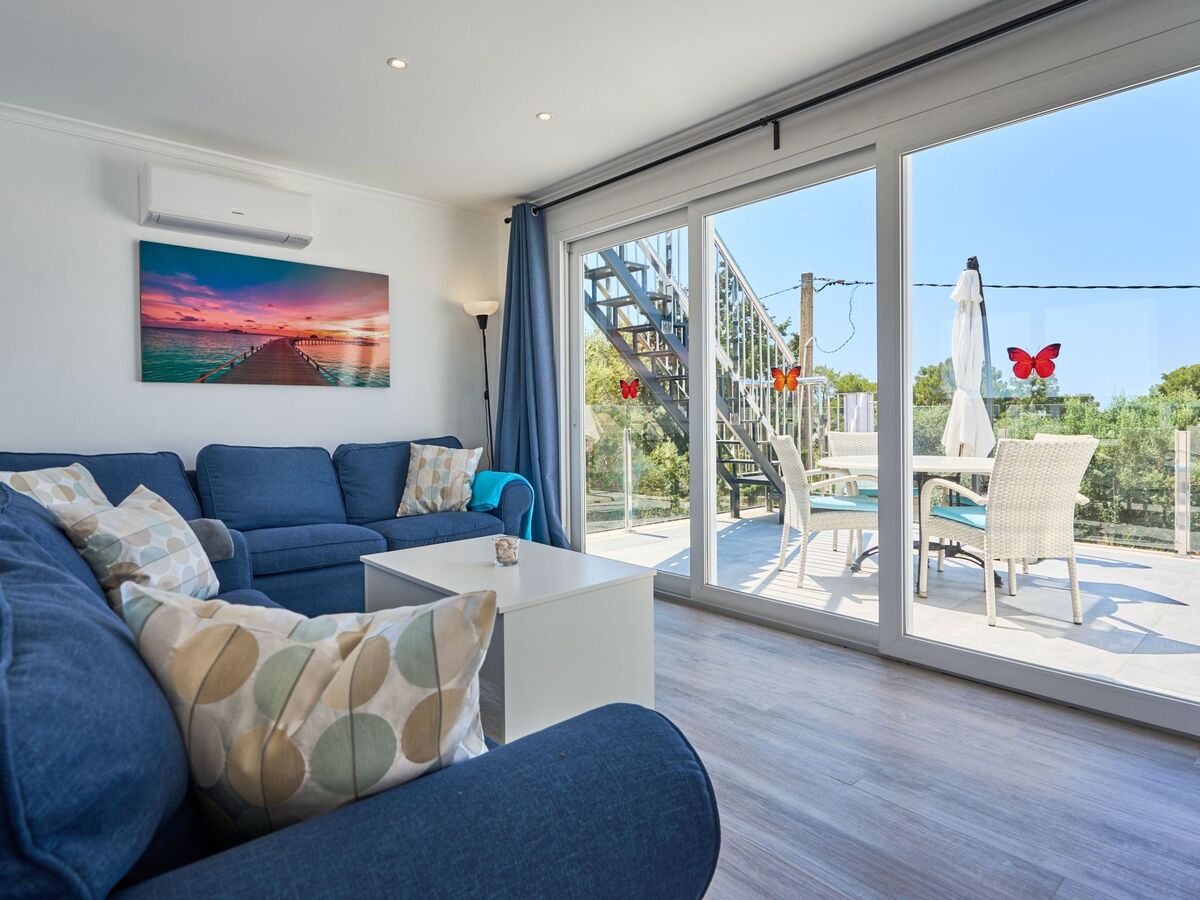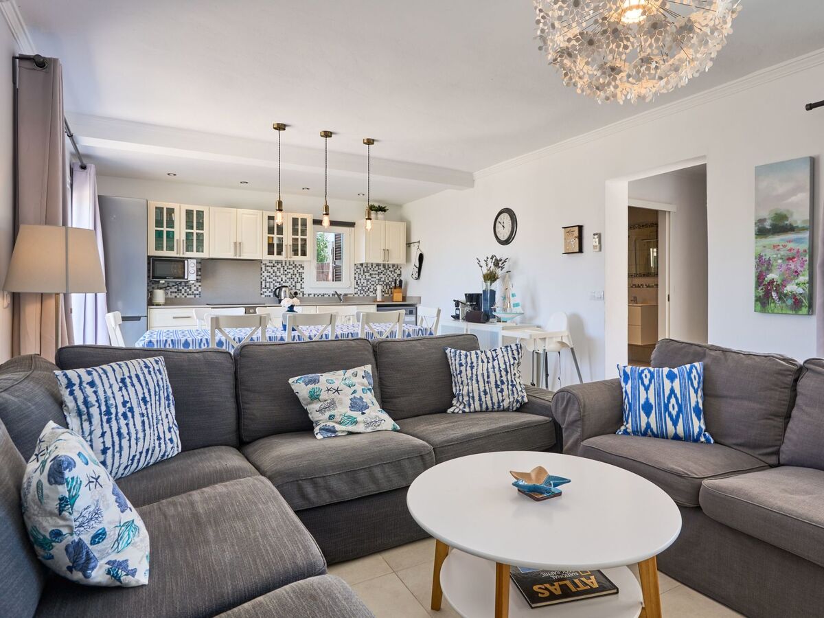 An external staircase leads to the upper floor, where there is a living room with access to a small terrace that offers sweeping views of the harbour of Porto Petro.