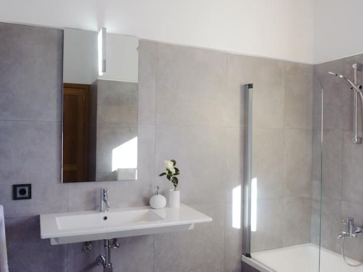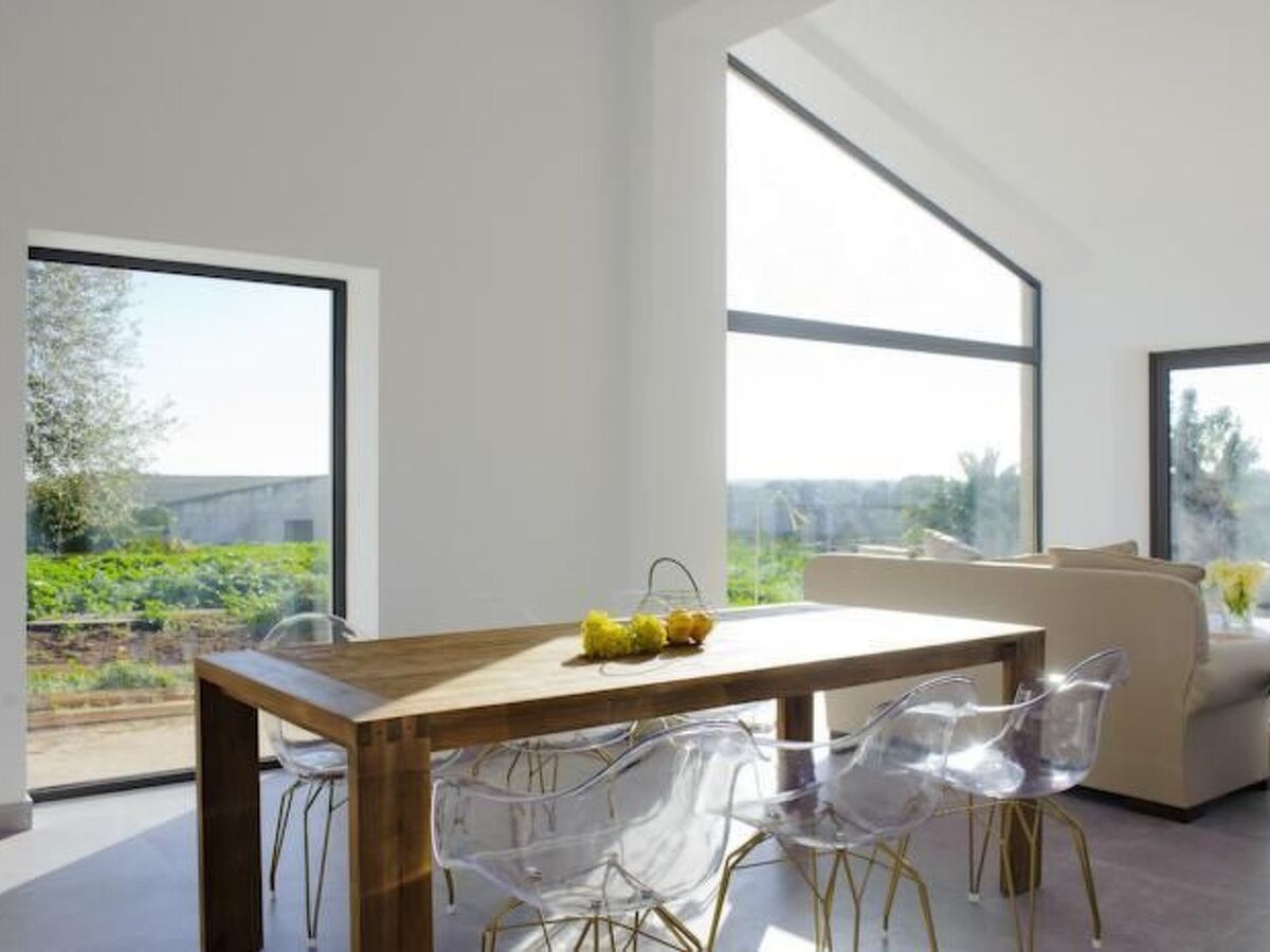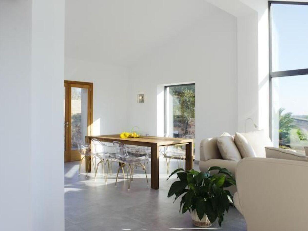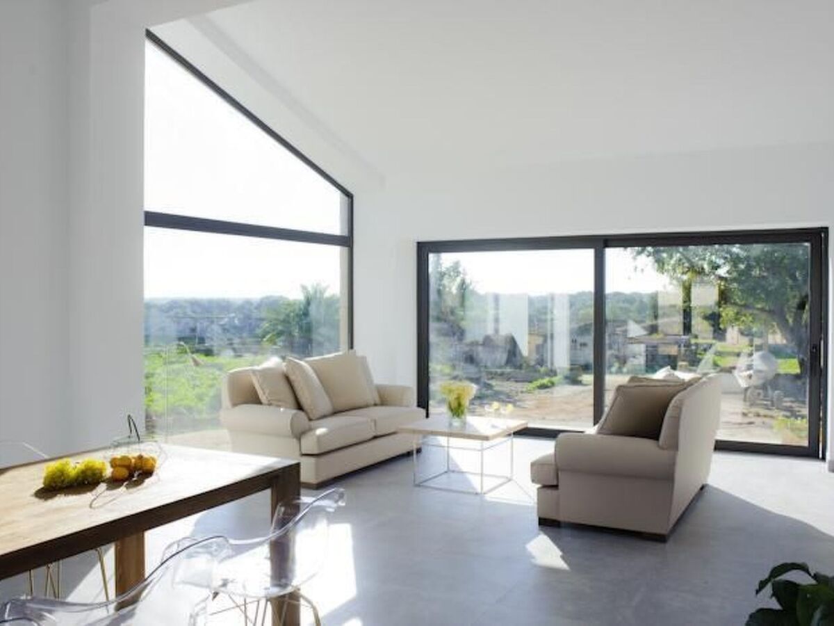 Toute la zone est inondée de lumière sans être chauffée par la lumière du soleil (vitrage spécial) et offre une vue magnifique sur les environs jusqu'à la ville de Santanyí au loin.