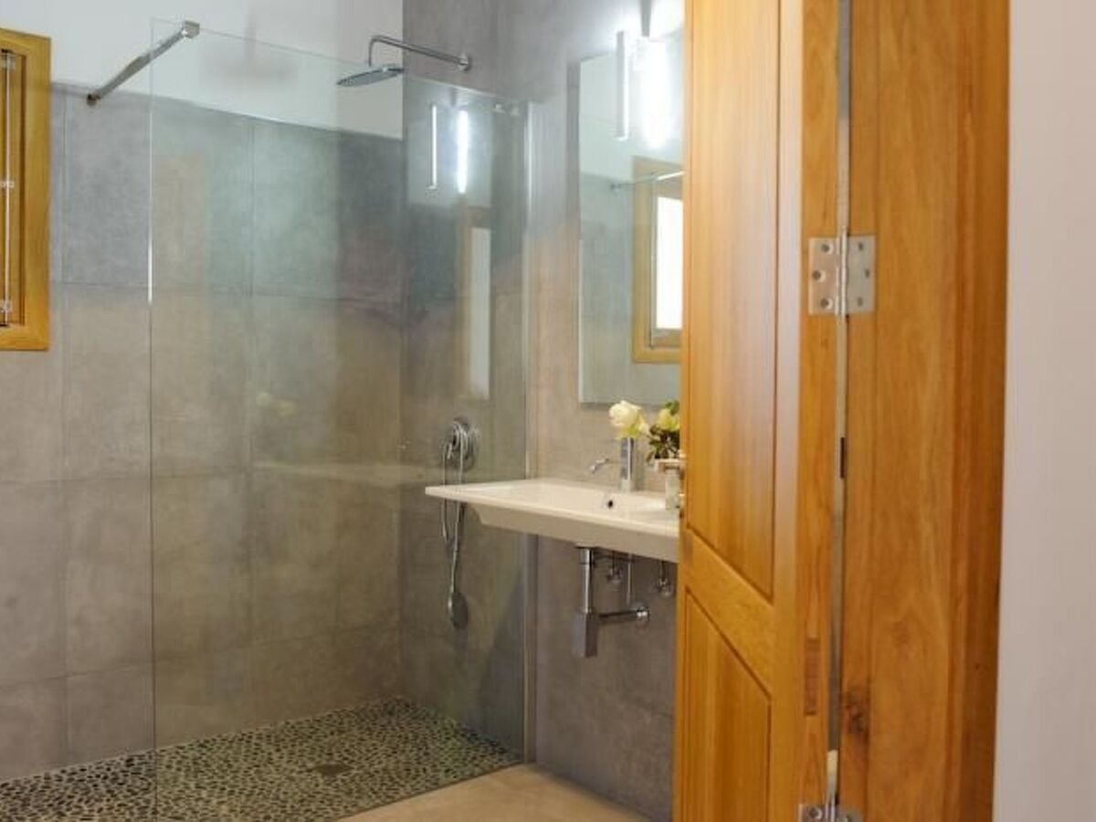 Un bassin de récupération d'eau de pluie en pierres naturelles, autrefois utilisé pour l'irrigation de la ferme, sert maintenant de piscine aménagée avec goût (8 x 4m profondeur : 1-1.80m) qui fonctionne avec un système d'électrolyse de l'eau salée et non plus à base de chlore.