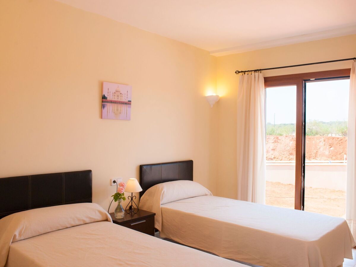 To the left of the entrance are 2 further bedrooms, also with 2 single beds each, which share a bathroom with Jacuzzi bath.