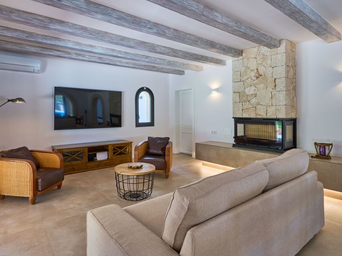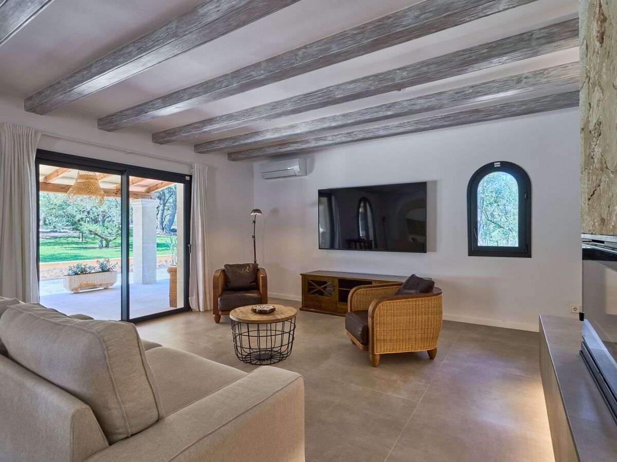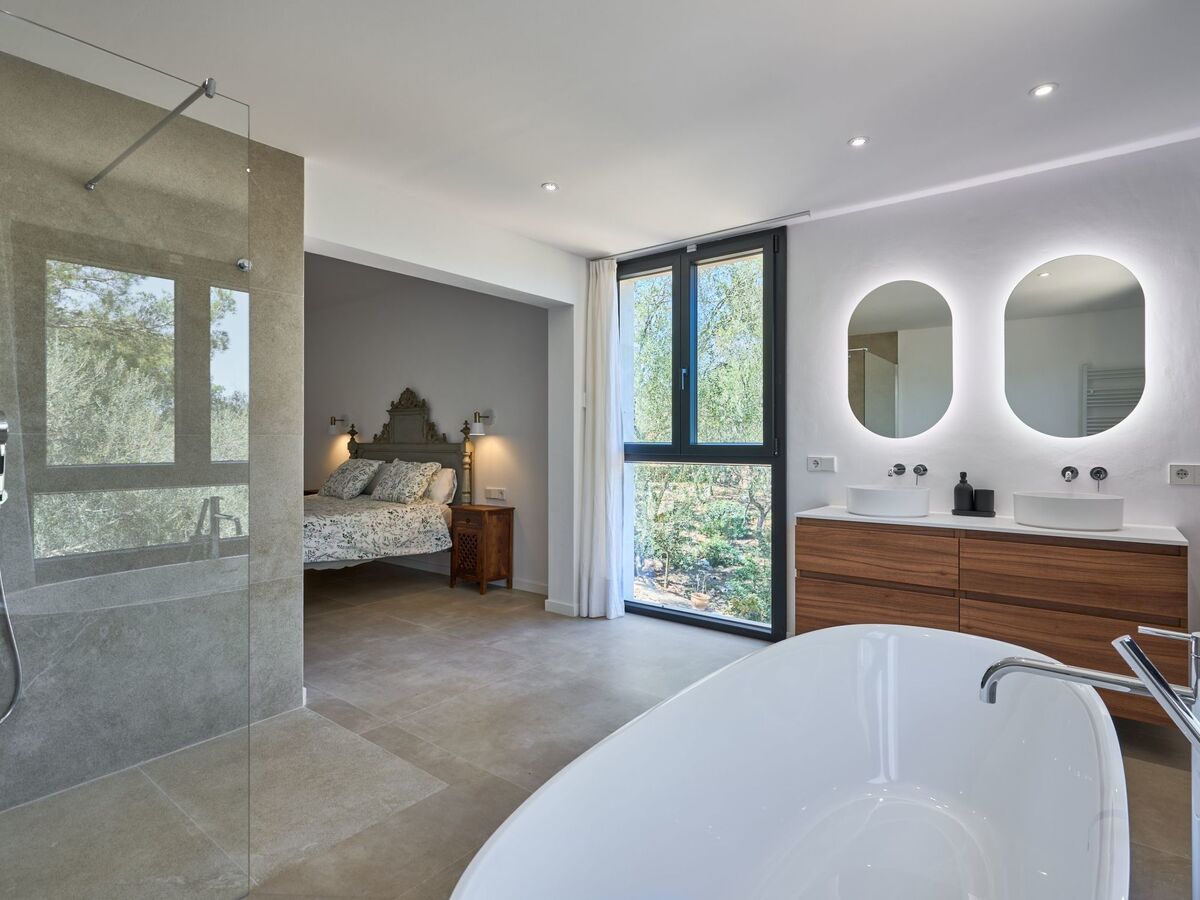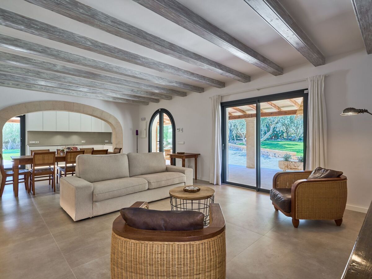 This holiday home is located on a large plot above the well-known sandy bay of Cala Sanau and is surrounded by old pine and olive trees.