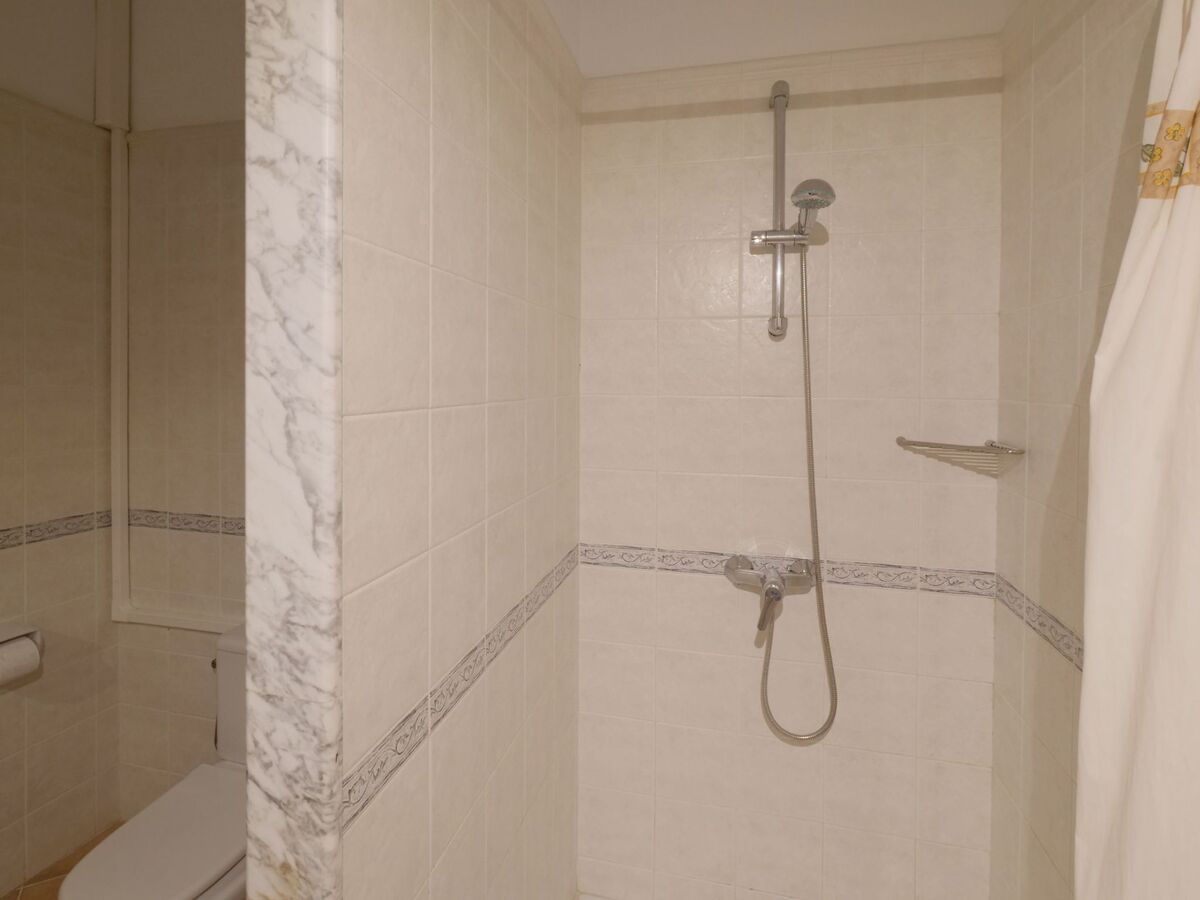 The washing machine is in a separate service room and there is also a separate guest toilet.