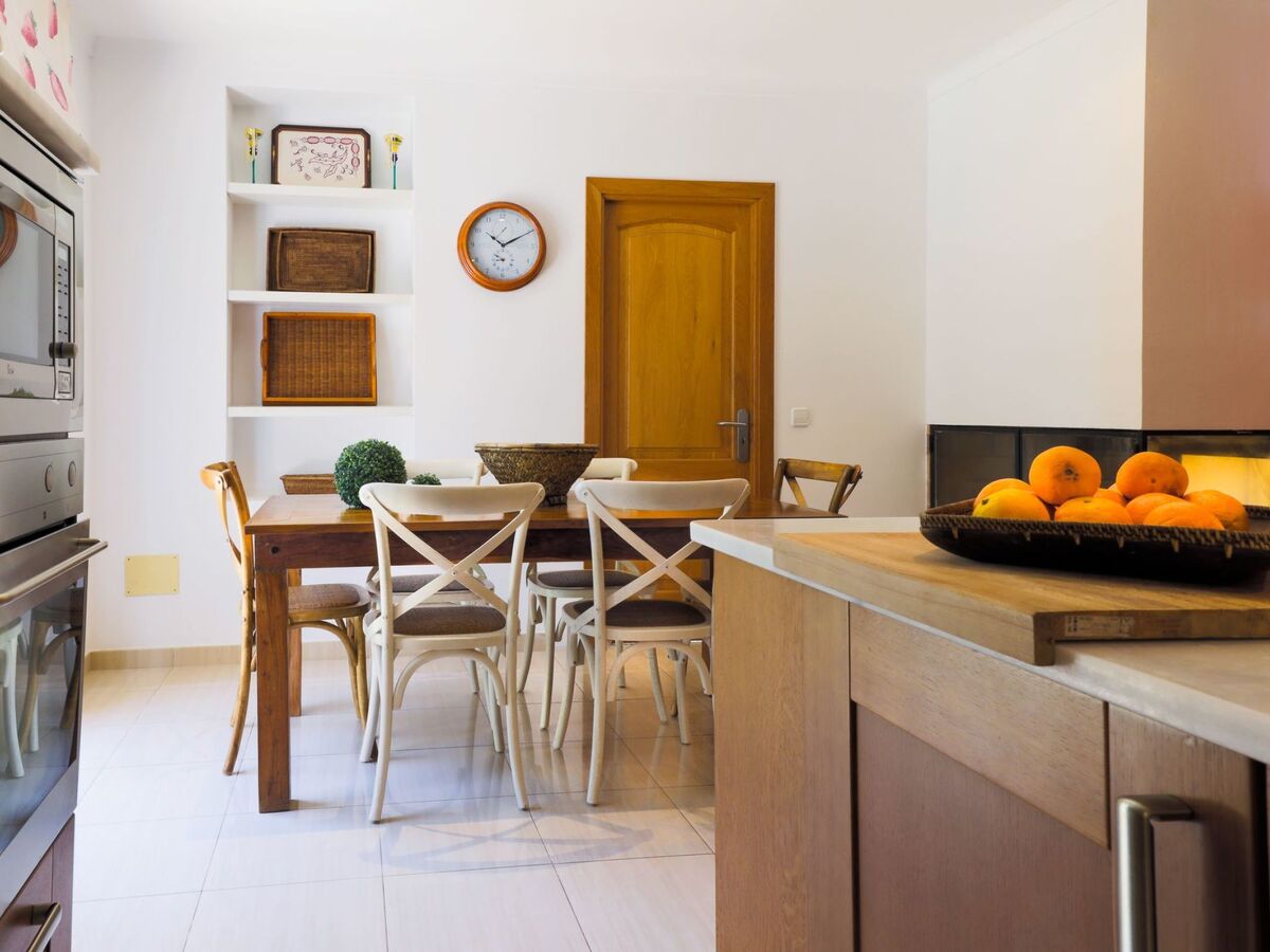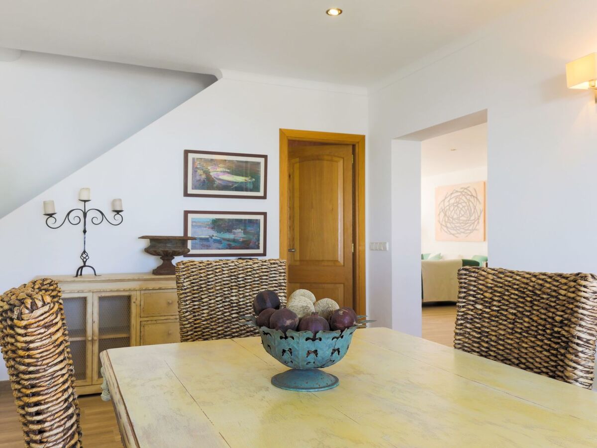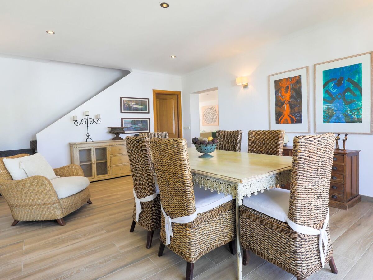The spacious dining room is very tastefully furnished, with a staircase connecting the ground floor with the upper floor.