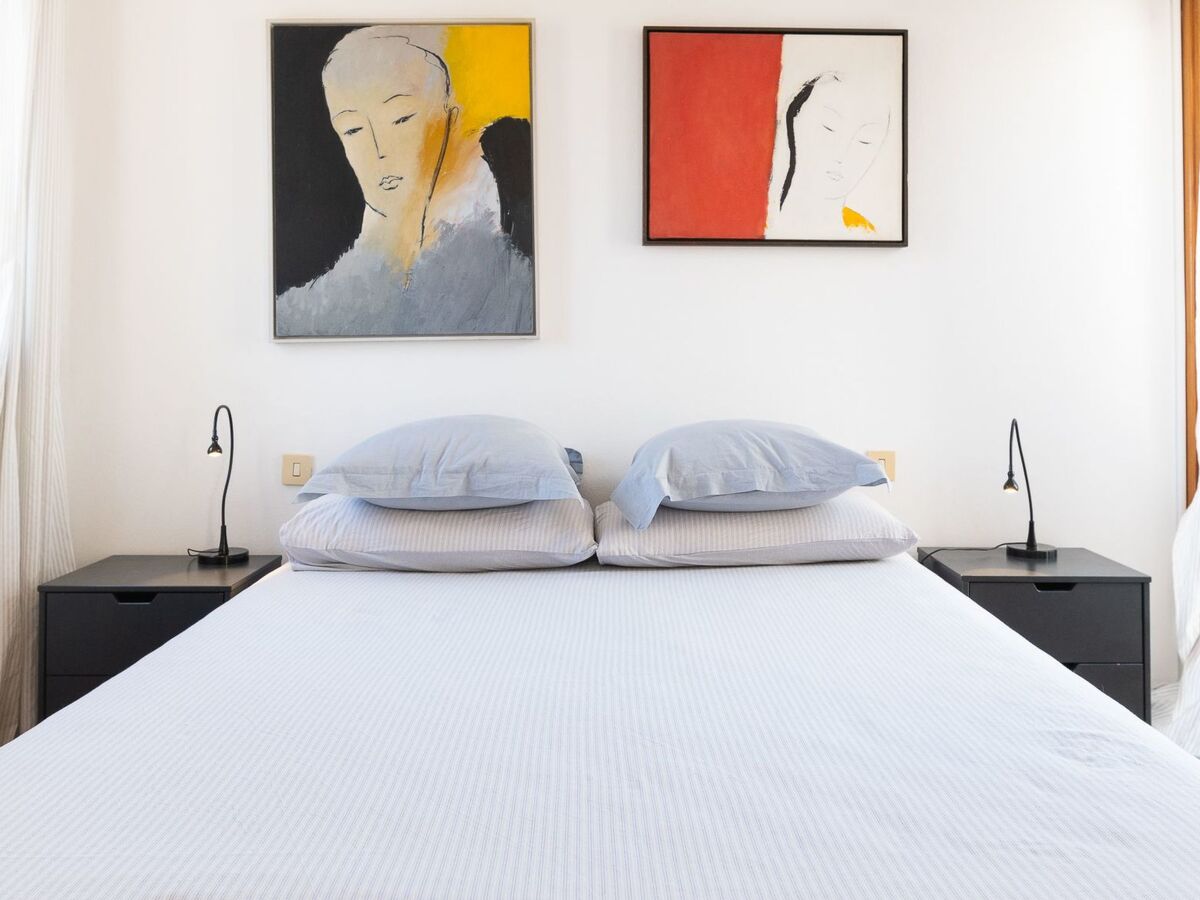 And a bedroom with a double bed with access to the balcony with partial views of the sea.