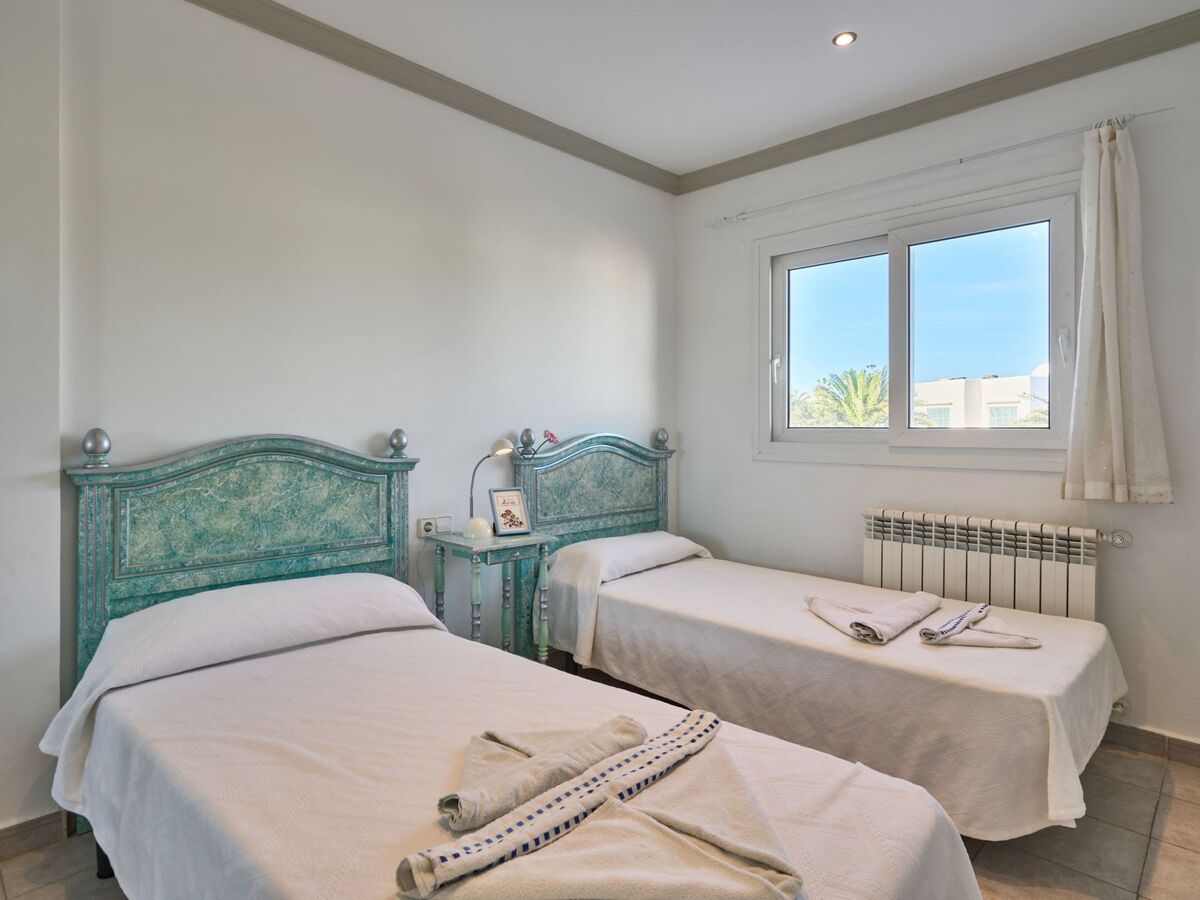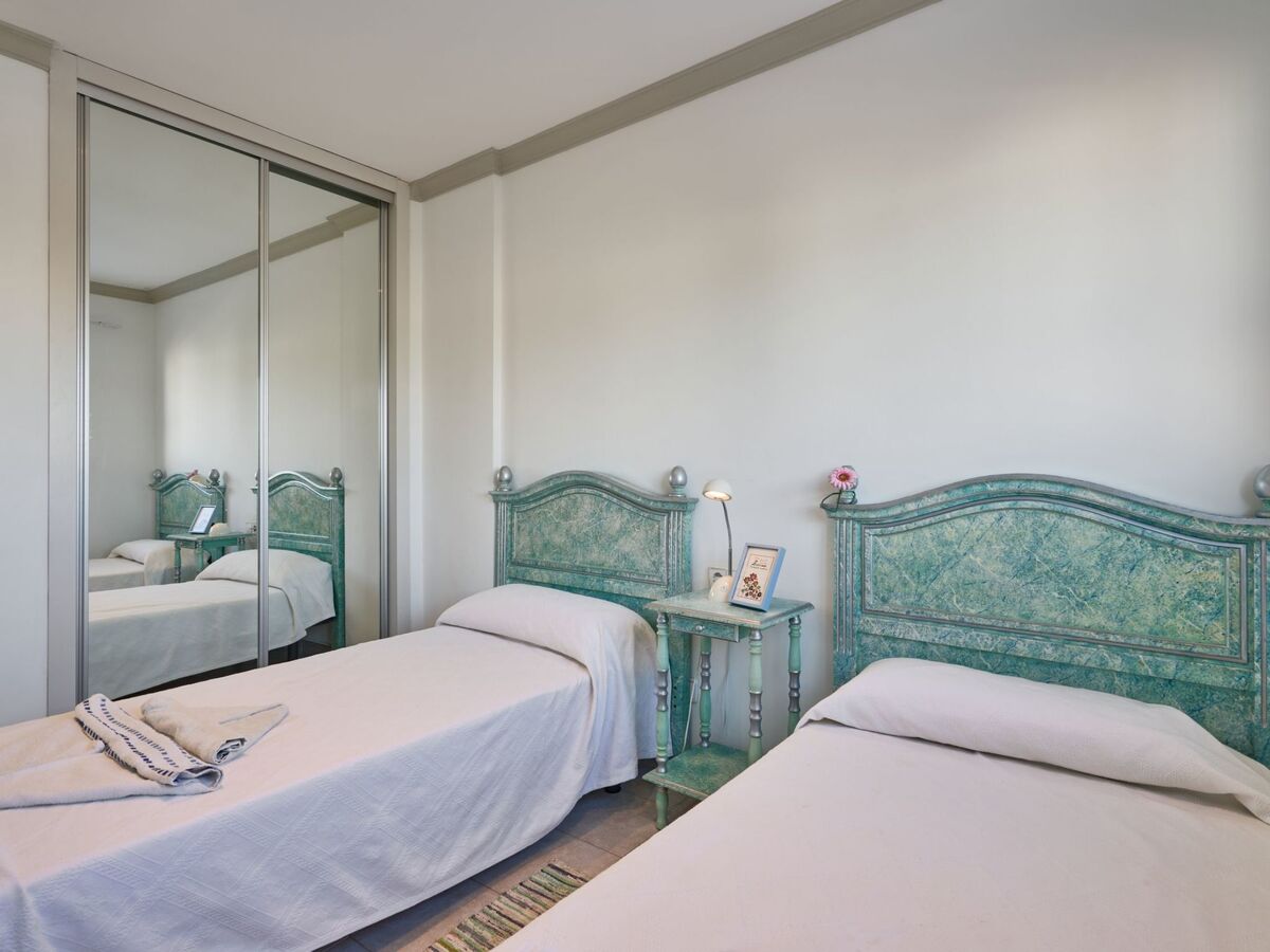 There is also a bedroom with two single beds, access to the covered terrace and a bathroom.