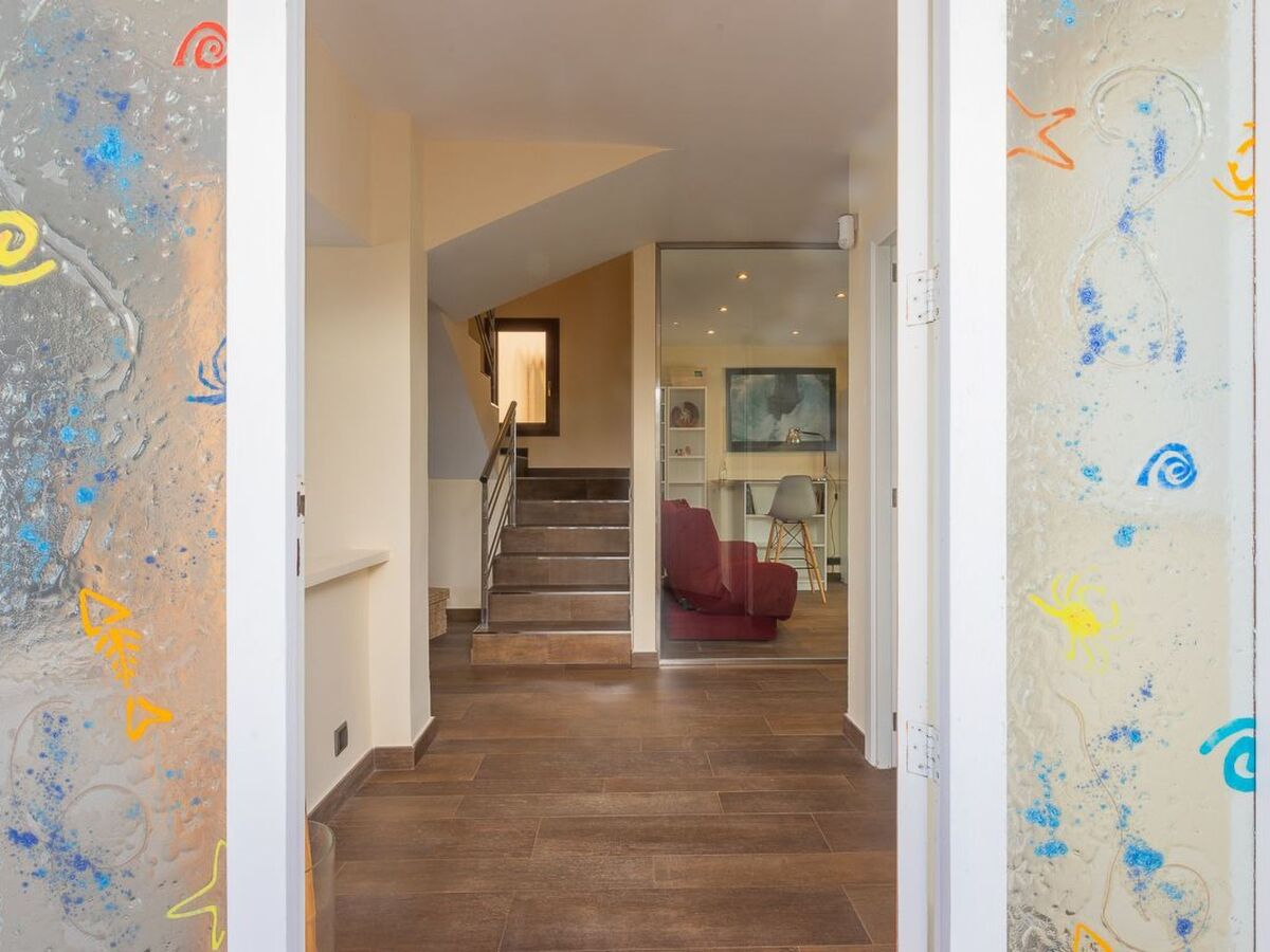 An open space connects the living room overlooking the terrace, the dining area and a small reading corner overlooking the pool and the porch where there is a table for al fresco dining, behind which extends the beautiful pool.