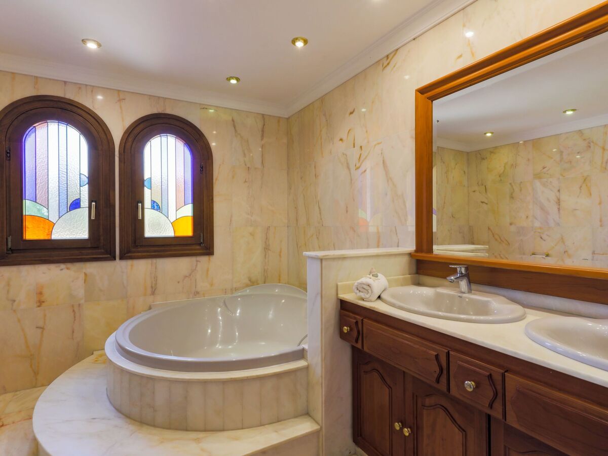 À l'étage supérieur se trouve une salle de bain avec des carreaux de marbre et une baignoire ronde.les amateurs de tennis disposent ici d'un terrain de tennis privé.