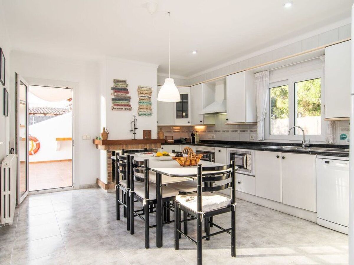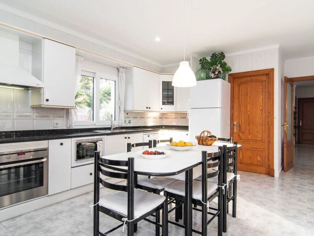 La cuisine bien équipée dispose d'une table de petit-déjeuner et d'une sortie latérale.